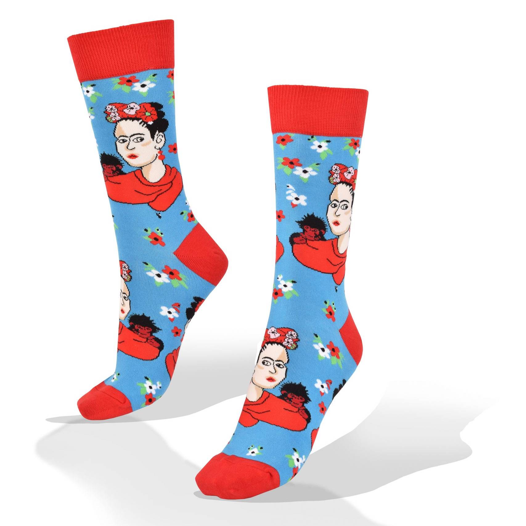 Medias Aves del Plata™ Frida Kahlo en Rojo, Fondo Celeste