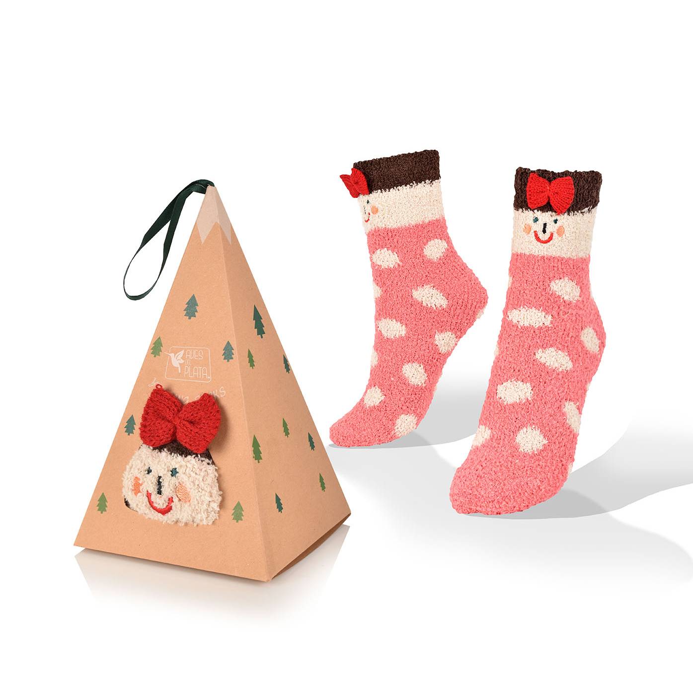 Medias en Caja Carpa Fondo Rosa con Pintititas y Cara