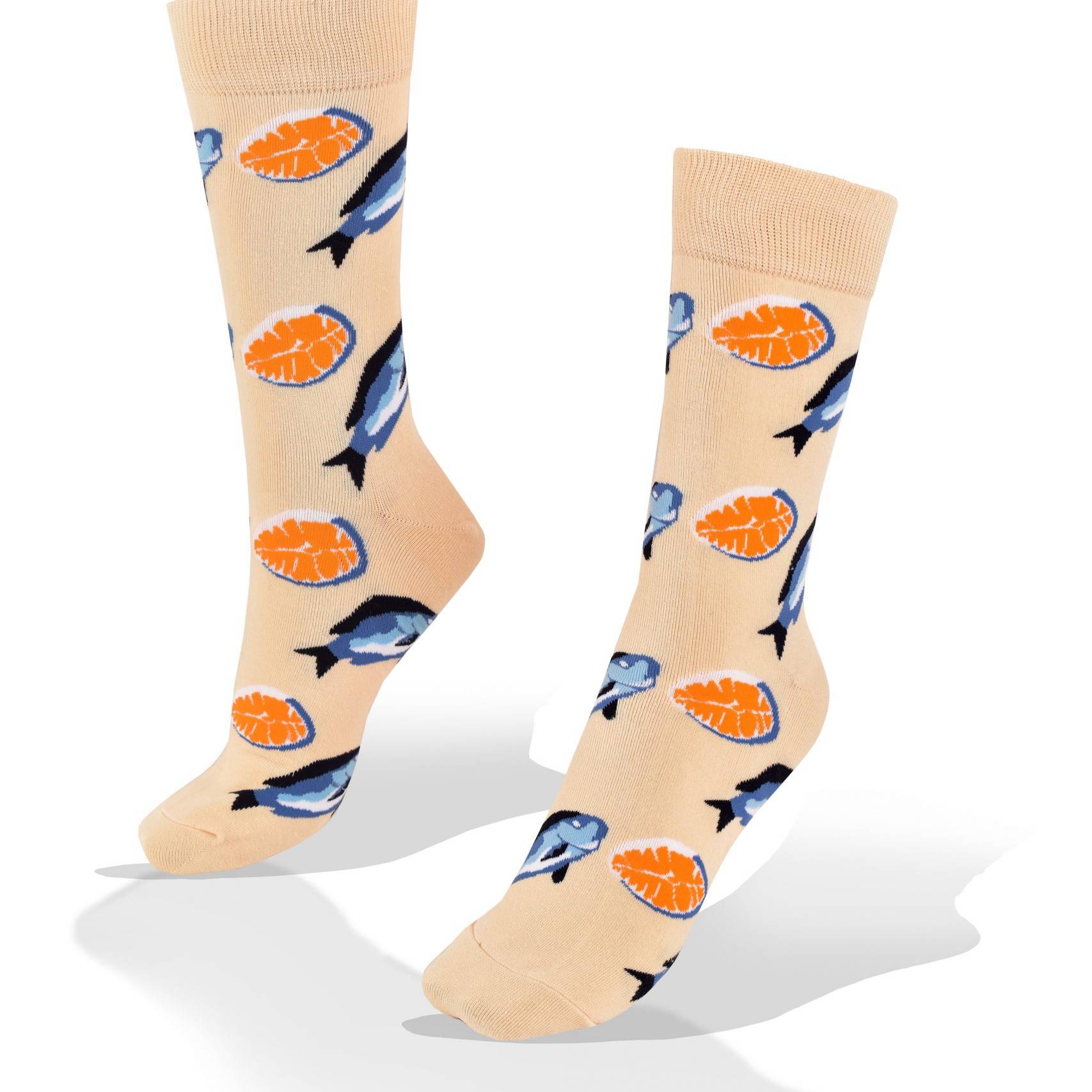 Medias Aves del Plata™ Pescados y Almejas Naranjas en Fondo Beige.