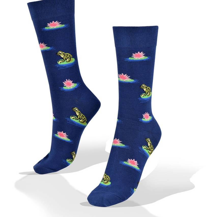 Medias Aves del Plata™ Rana y Nenúfares, Fondo Azul.