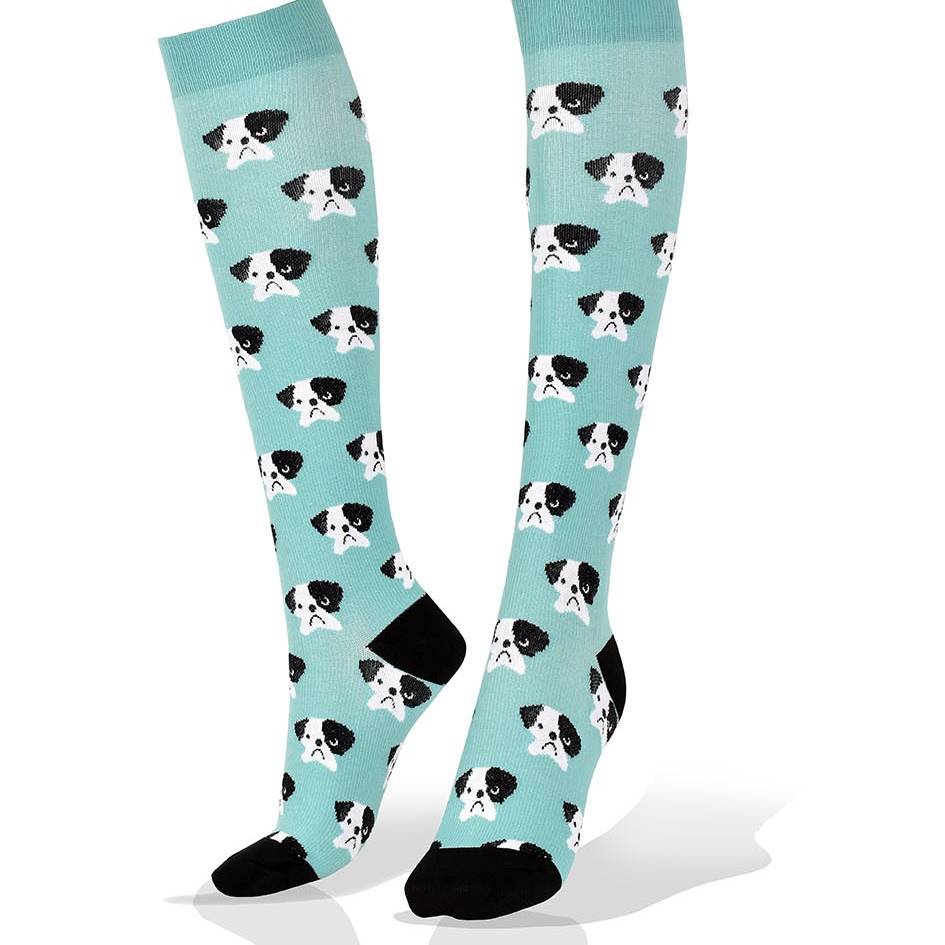 Medias de Compresión Caras de Perros en Fondo Turquesa