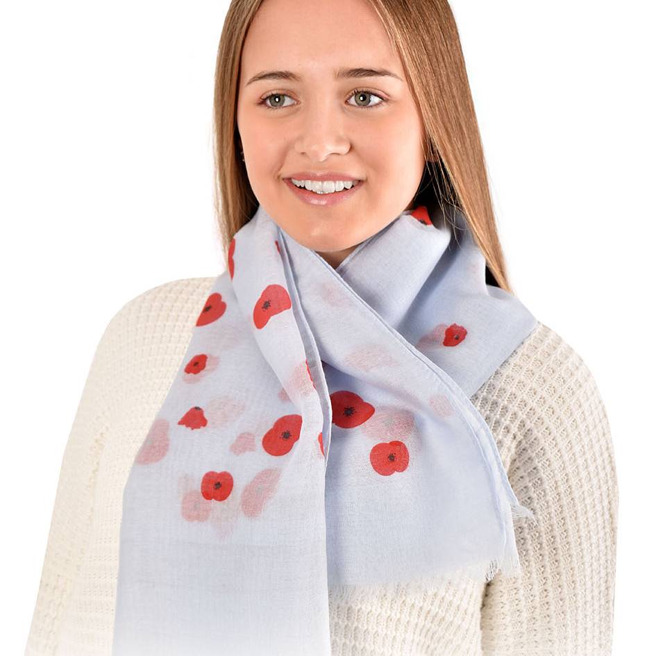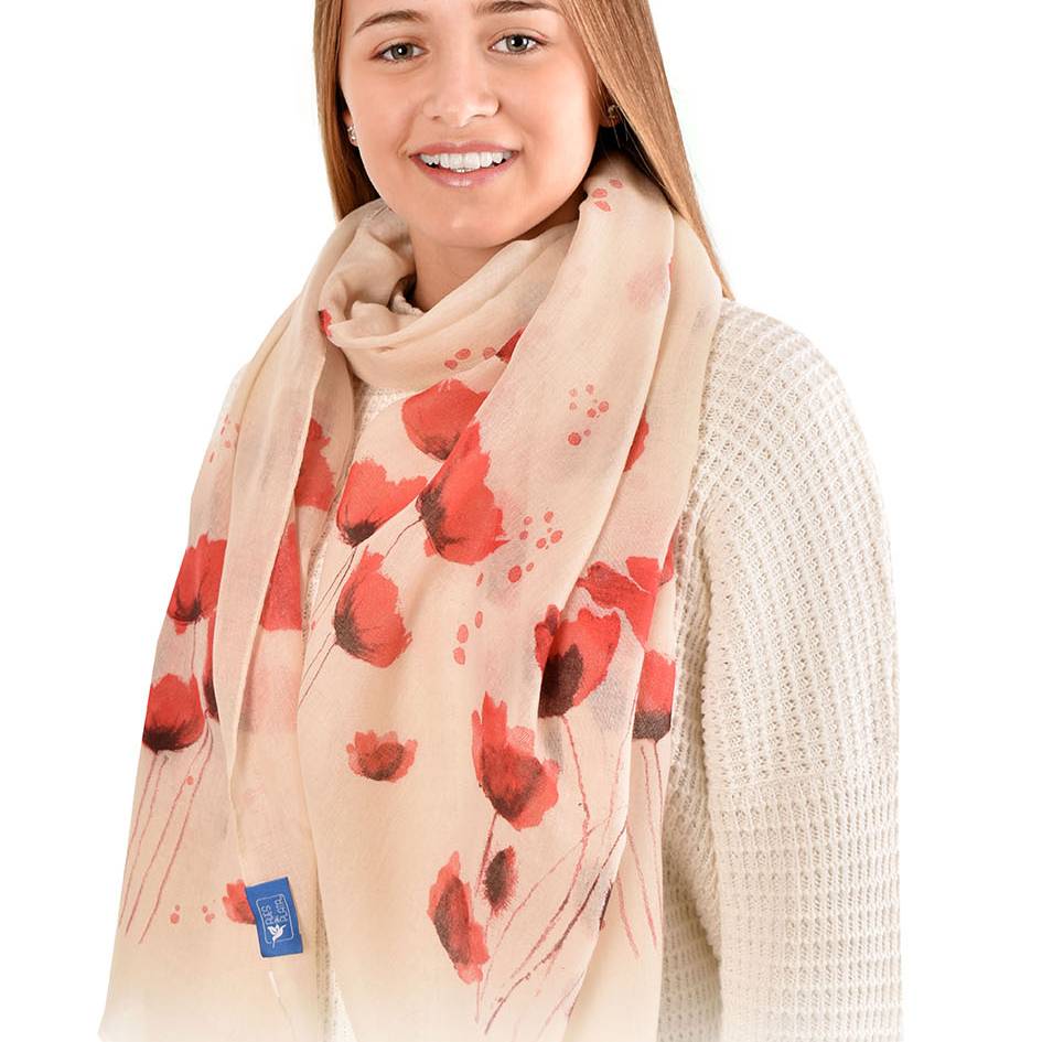 Bufanda Pañuelo con Amapolas Fond Celeste