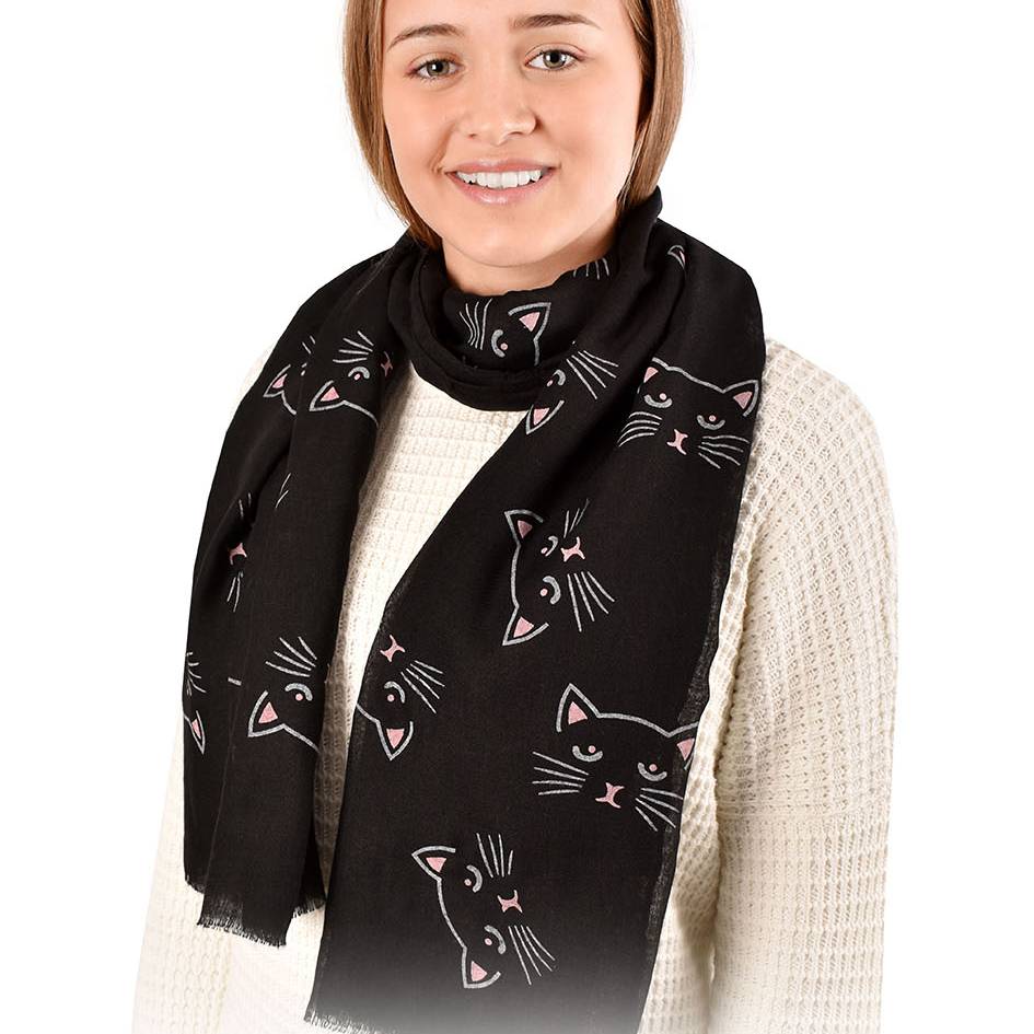 Bufanda Pañuelo Cara de Gato en Fondo Negro