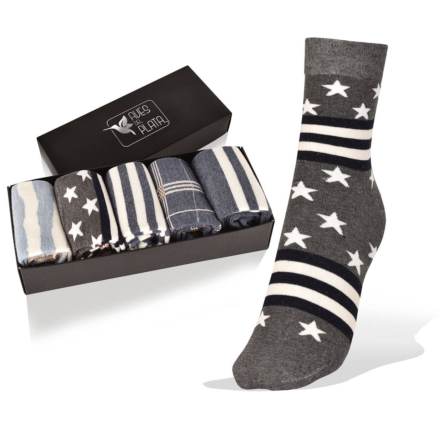 5 Pares de Medias en tonos de Gris con Rayas y Estrellas