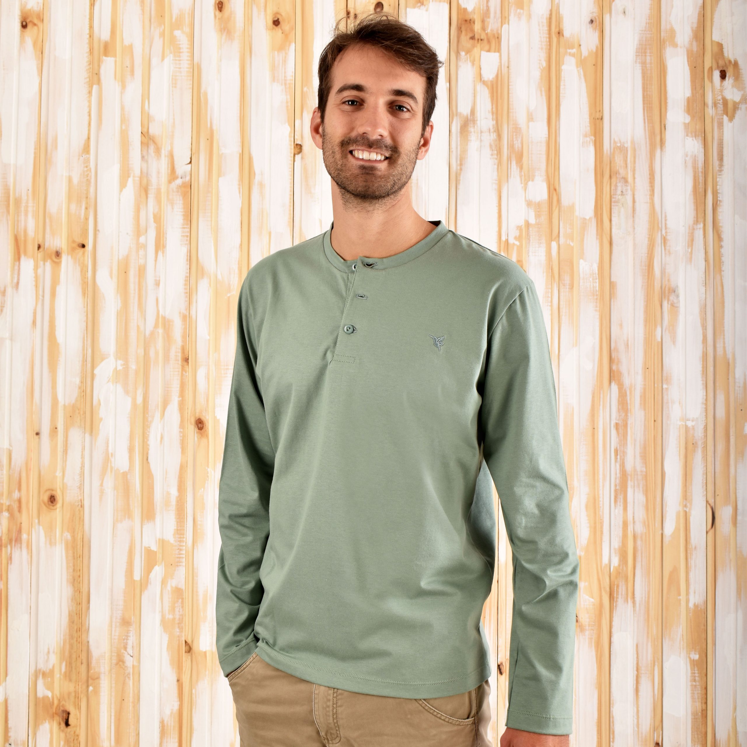 Remera Henley Verde Oliva Manga Larga