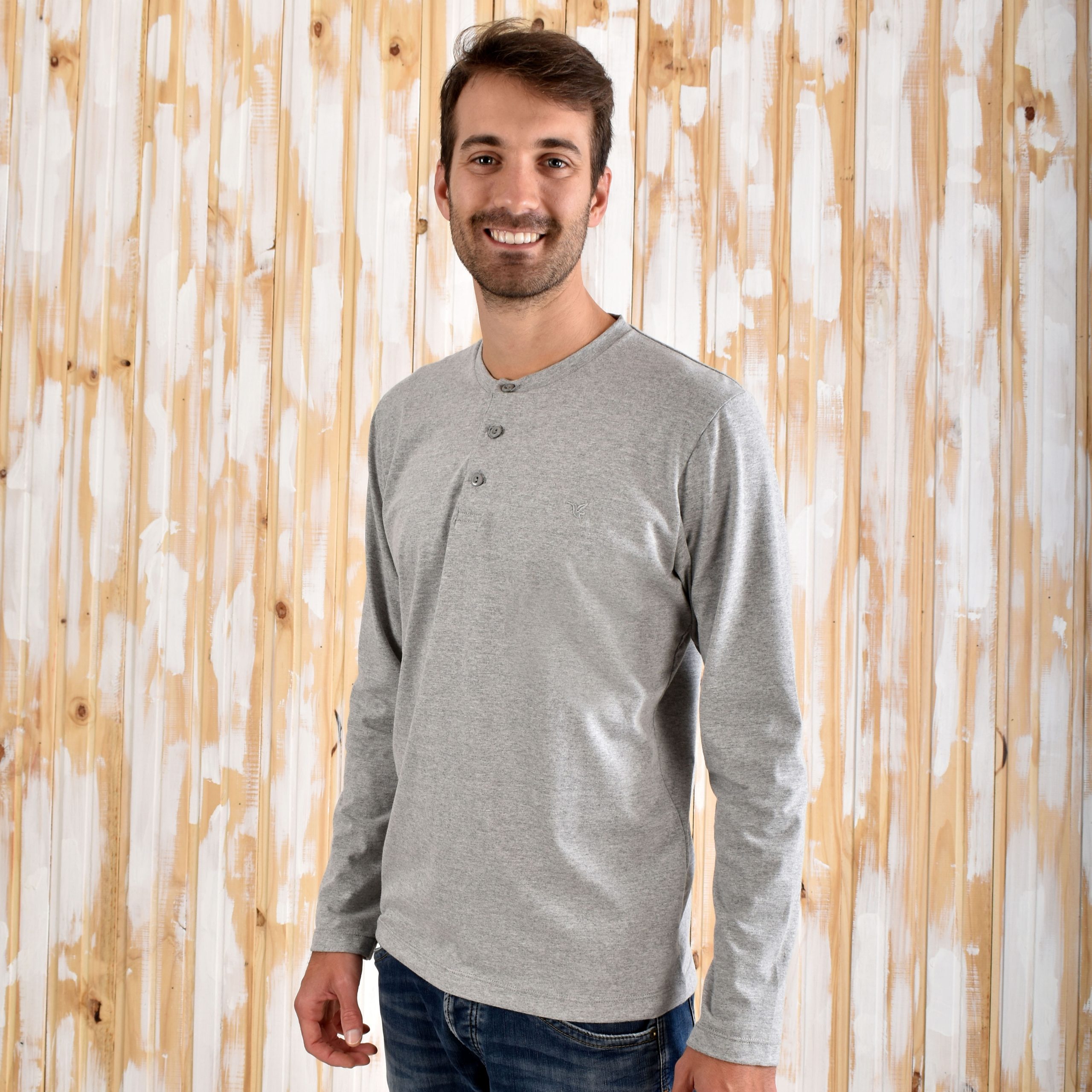 Remera Henley Manga Larga Gris Jaspeado Aves del Plata™