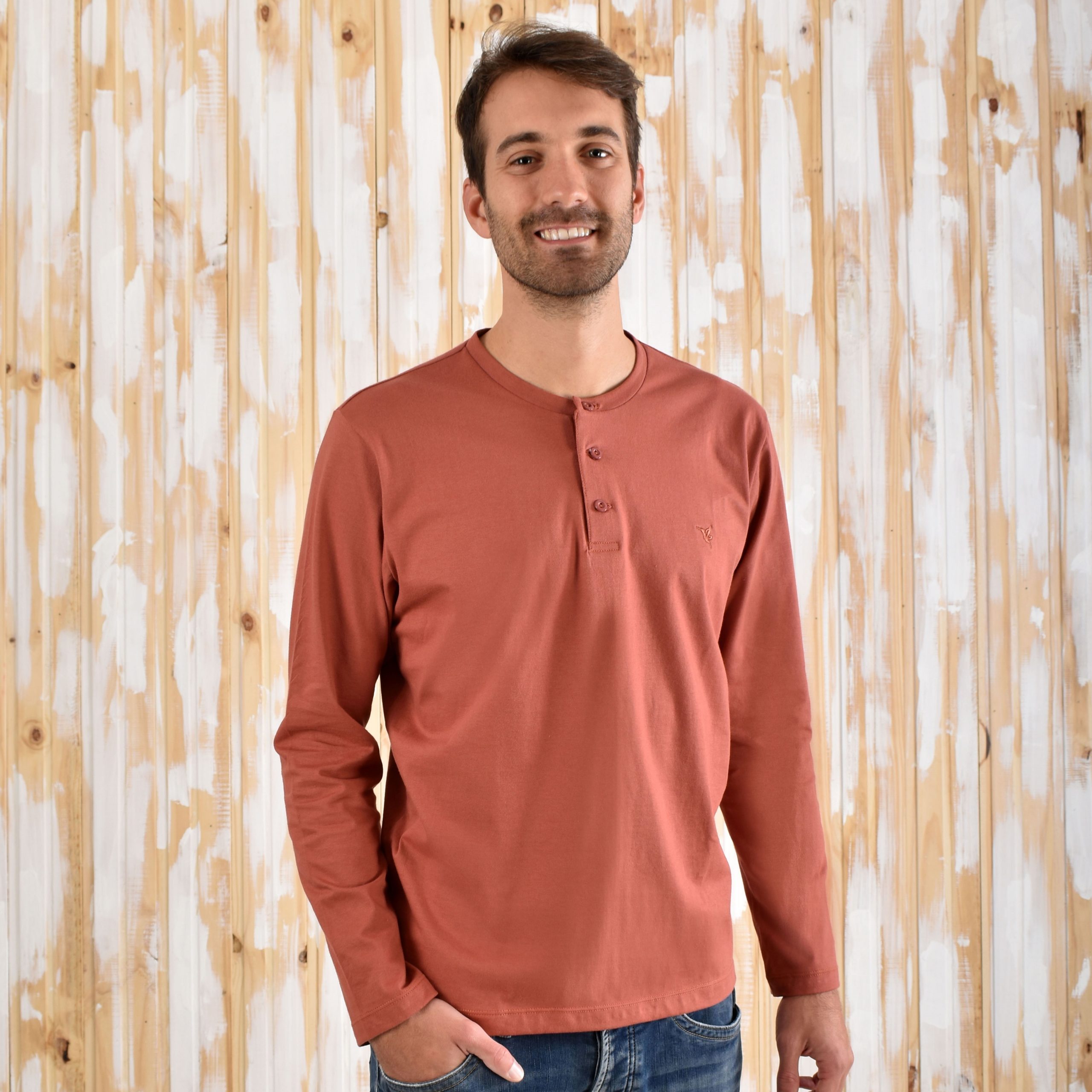 Remera Terracota Henley Manga Larga Aves del Plata™