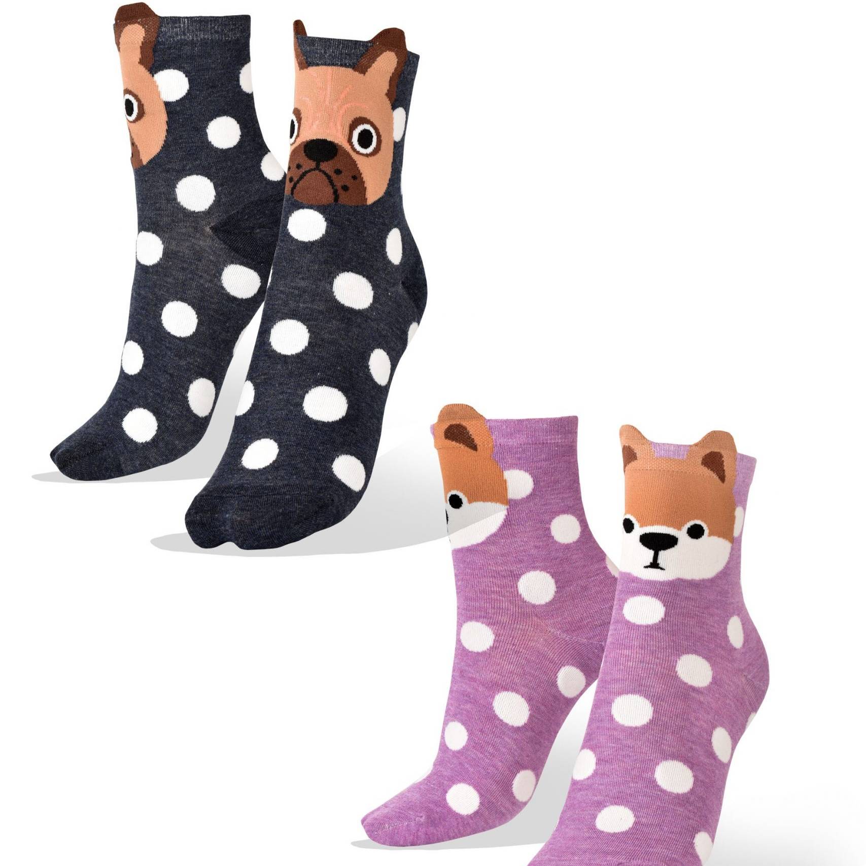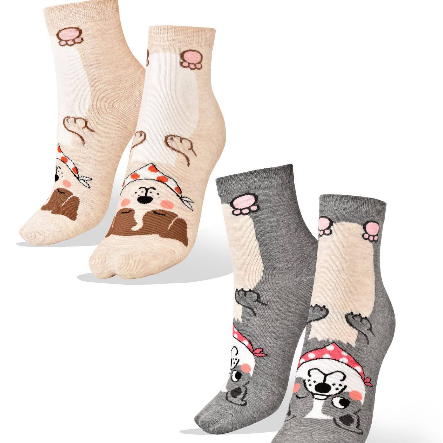 2 Pares Medias Caras de Perros en Fondo con Pintitas Aves del Plata™