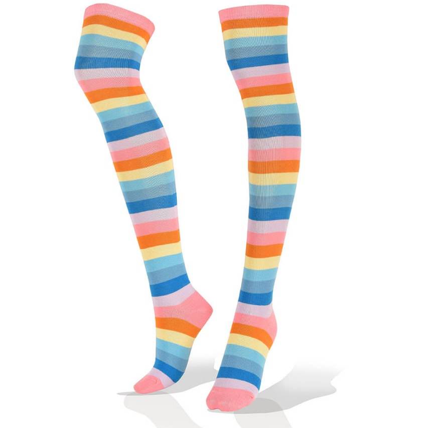 Medias Largas Altas Rayas en Violeta, Amarillo y Verde