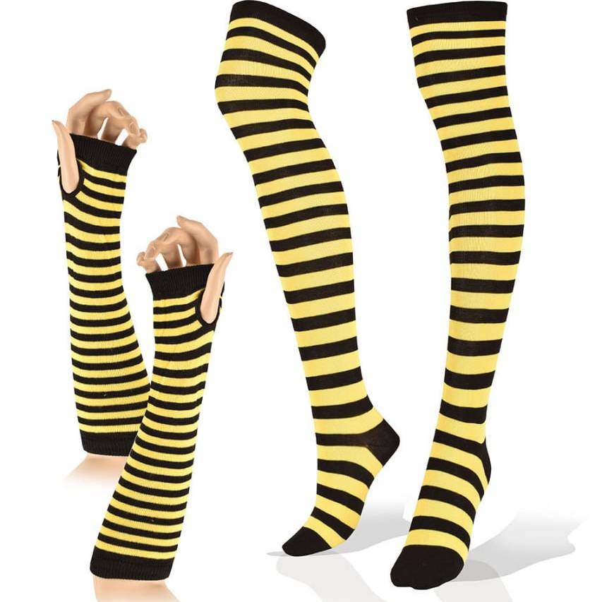 Medias Largas Altas Rayadas y Guantes Largos sin Dedos en Amarillo y Negro