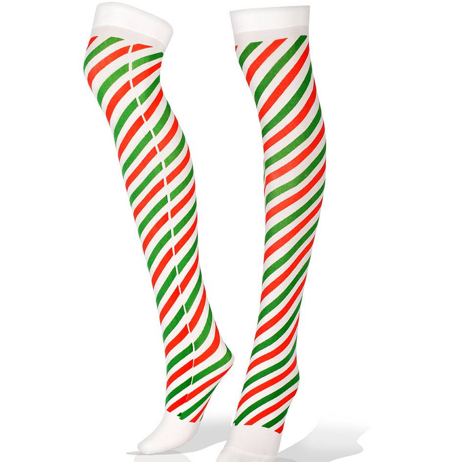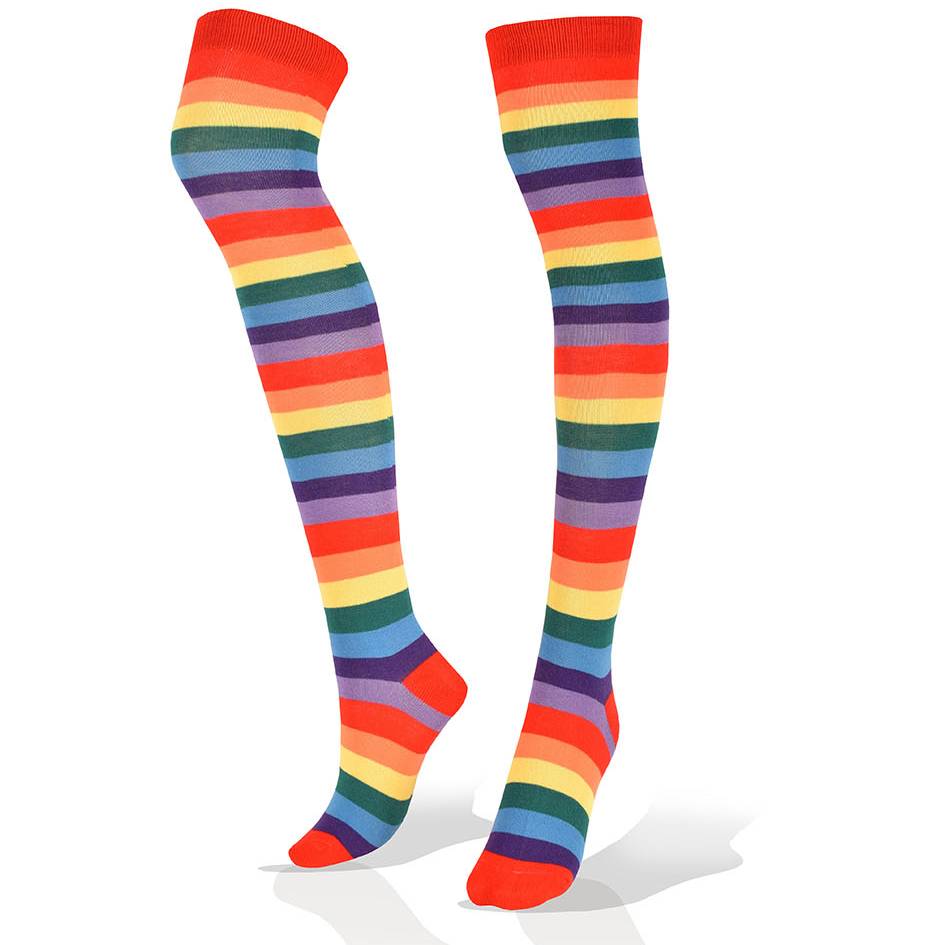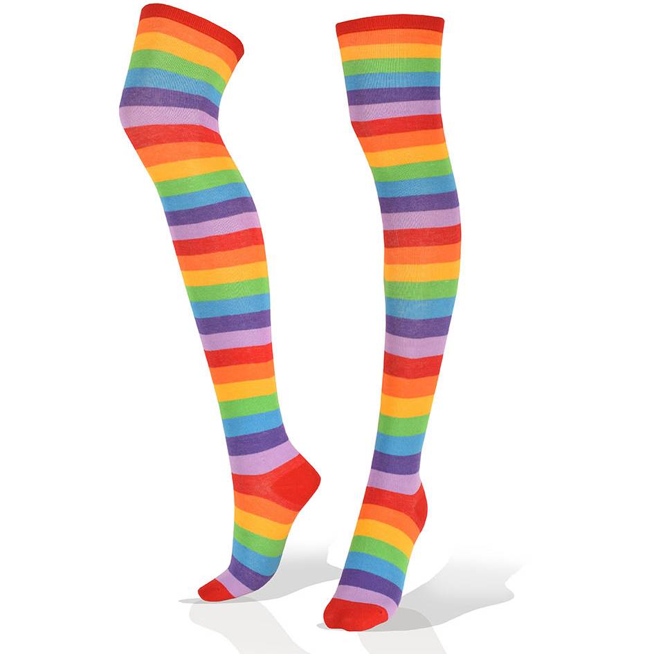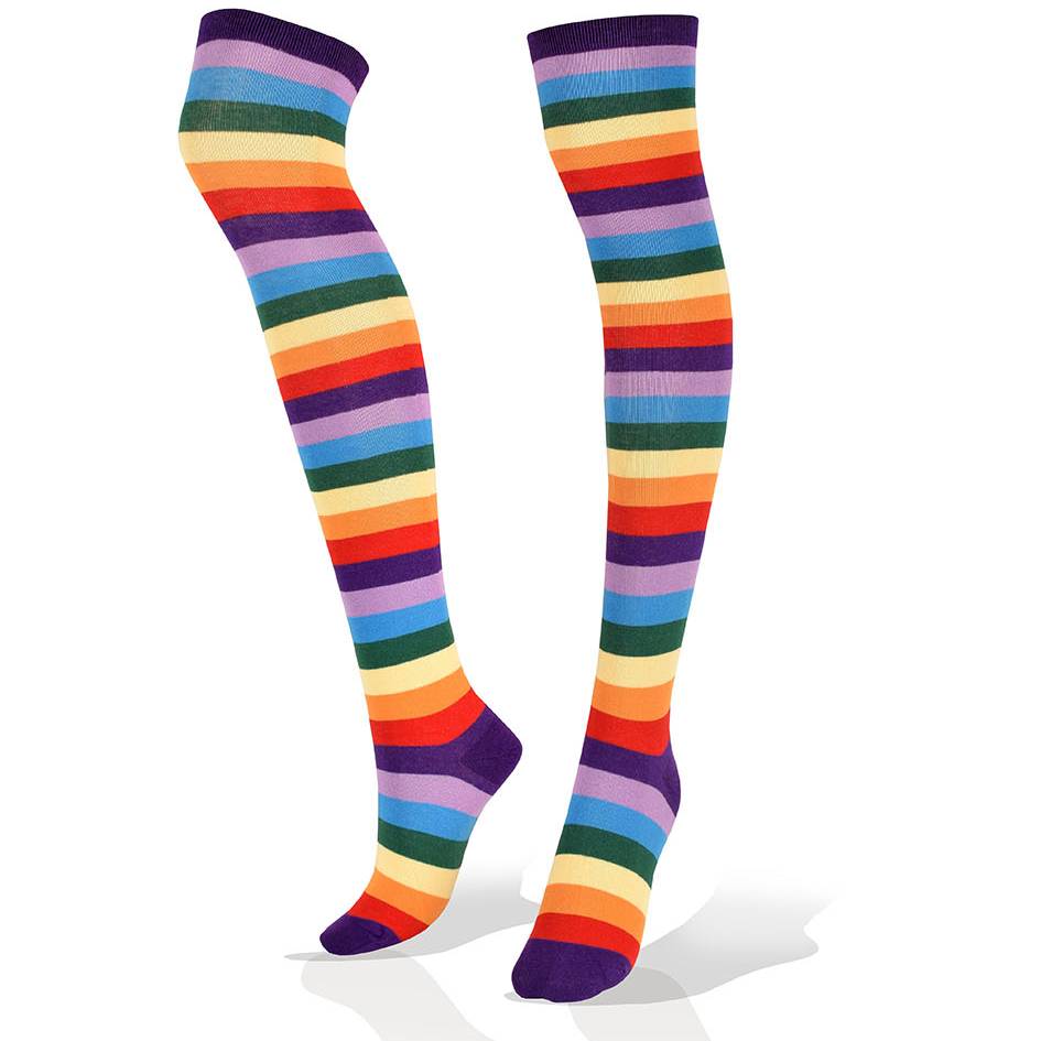 Medias Largas Altas Multicolor con Rayas Violeta Borde Rojo