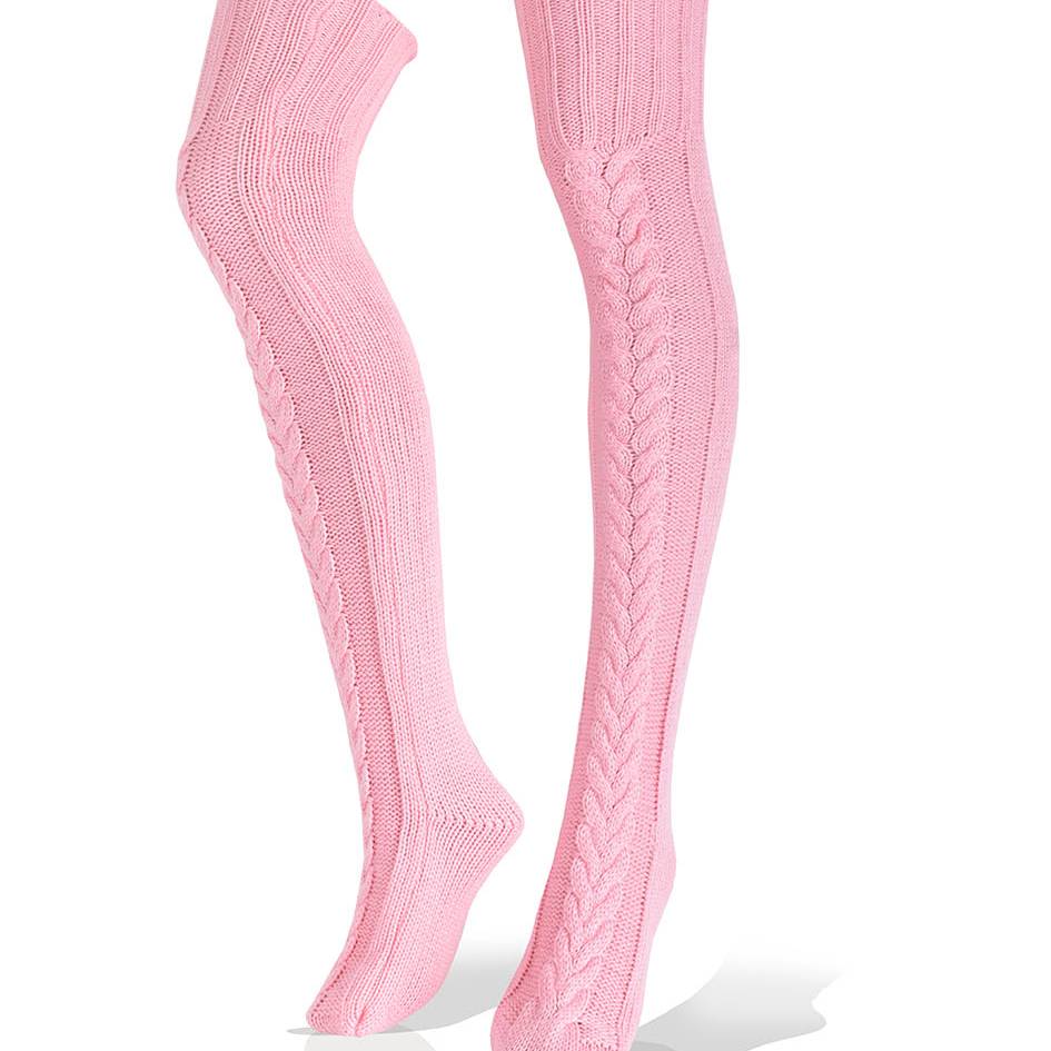 Medias largas altas rosadas con trenzas.