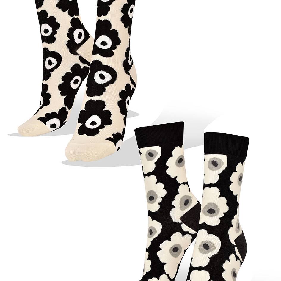 Medias Flores en Blanco y Negro 2 Pares Aves del Plata™