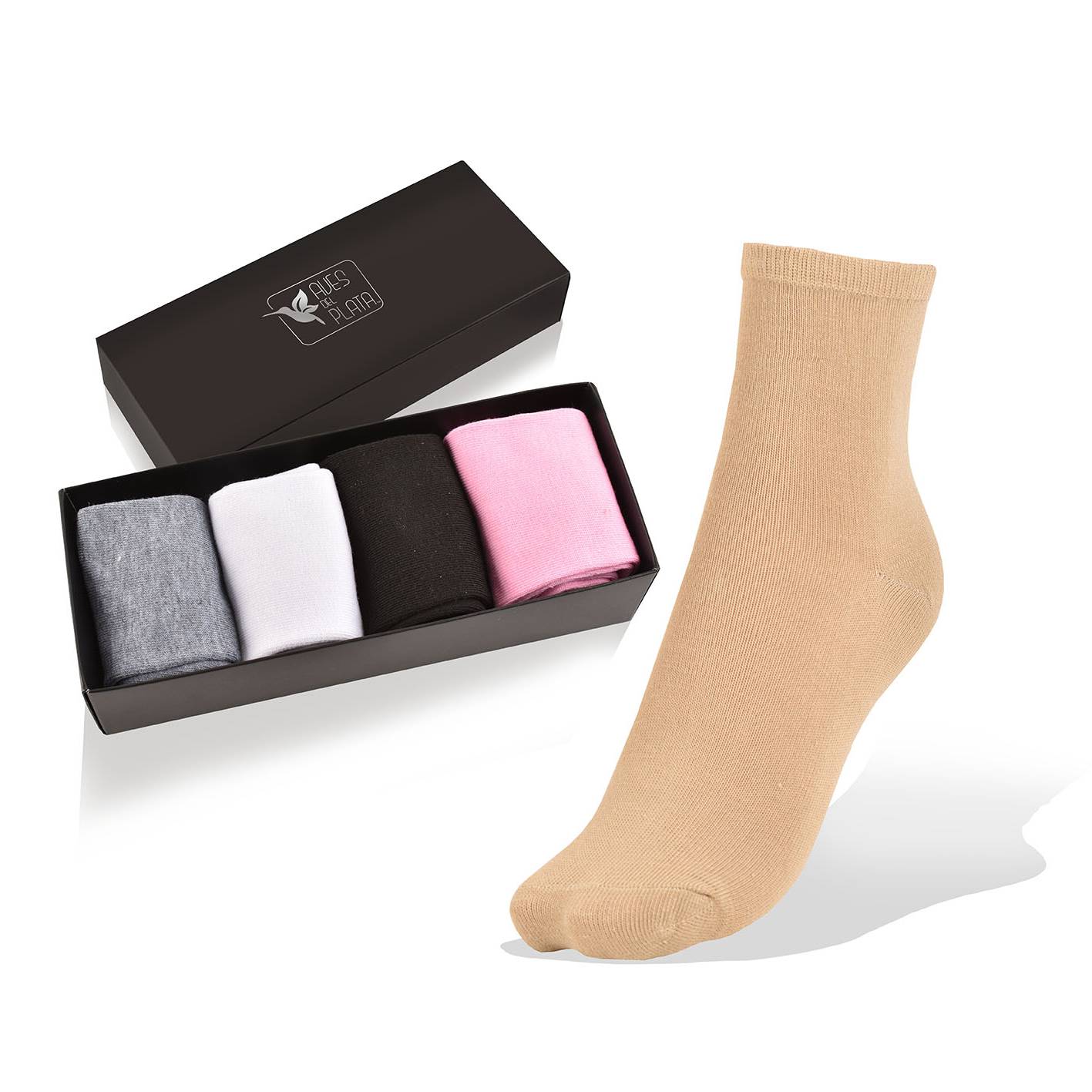 5 Pares de Medias Lisas: Rosa, Blanco, Negro, Gris, Beige.