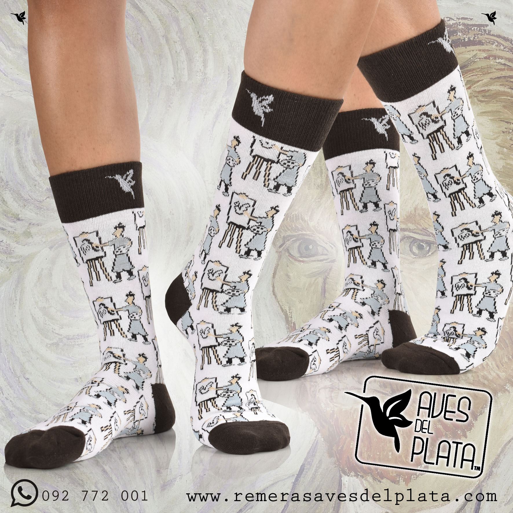 Medias Artista Pintando en Blanco y Negro diseño exclusivo Aves del Plata