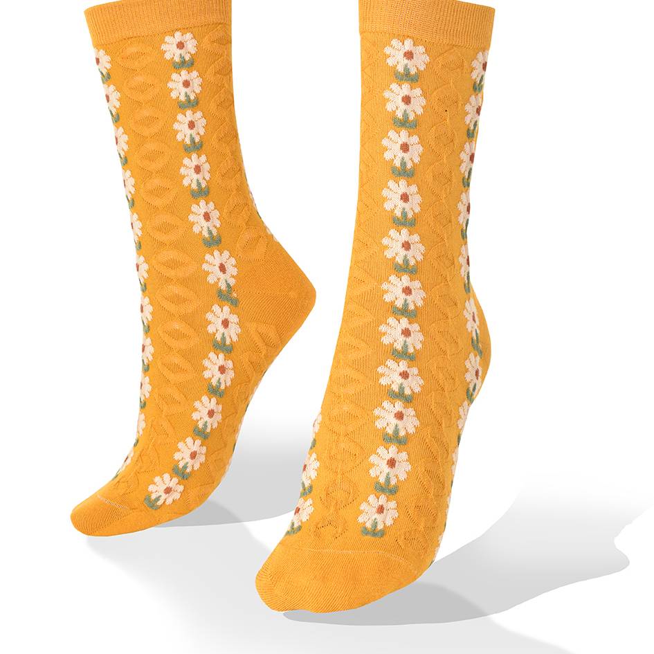 Medias con Margaritas Fondo Mostaza Aves del Plata™