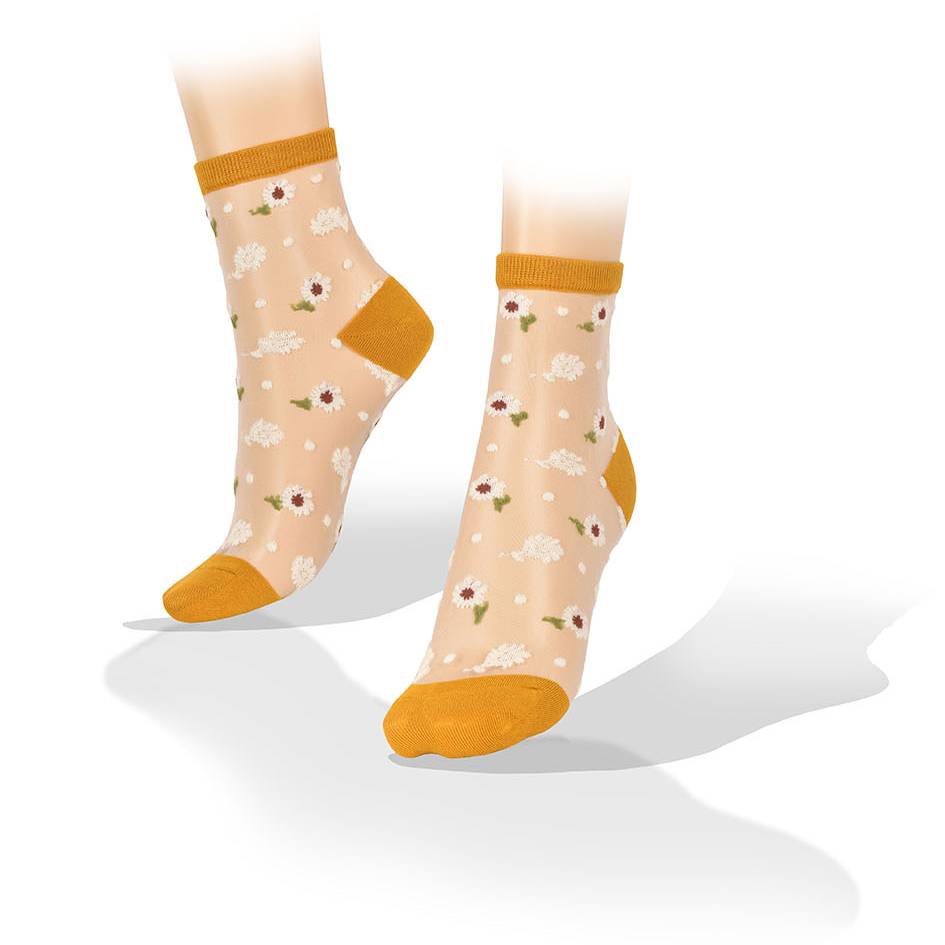 Medias Transparentes con Margaritas Fondo Mostaza Aves del Plata™