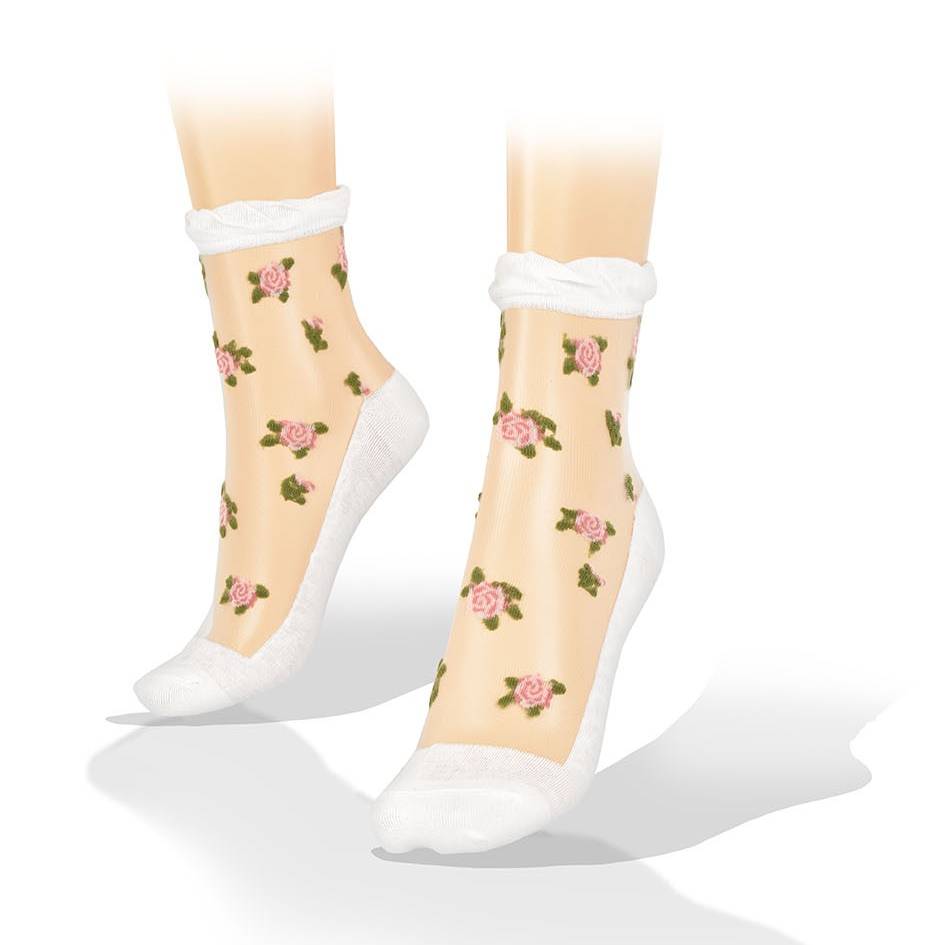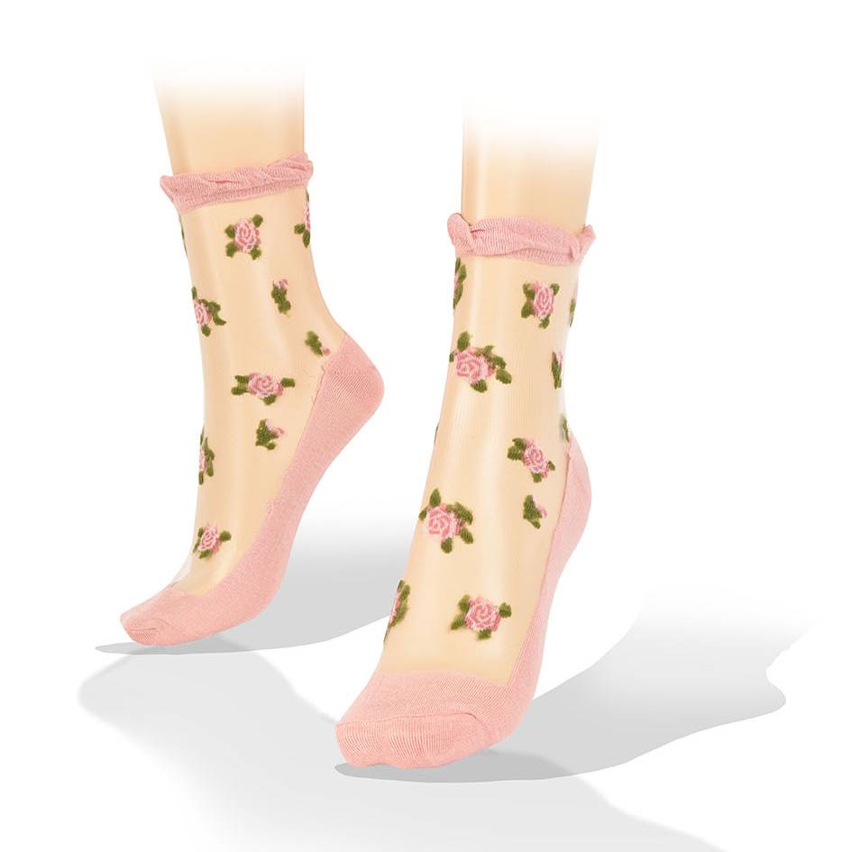 Medias Transparentes con Rosas Rosadas y Borde Blanco Aves del Plata™