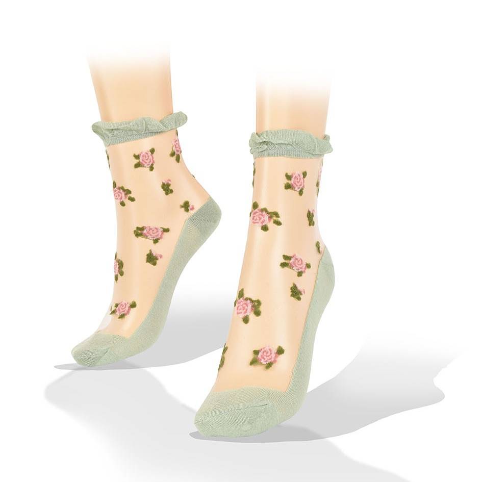 Medias Transparentes Con Rosas Rosadas y Borde Verde Aves del Plata™