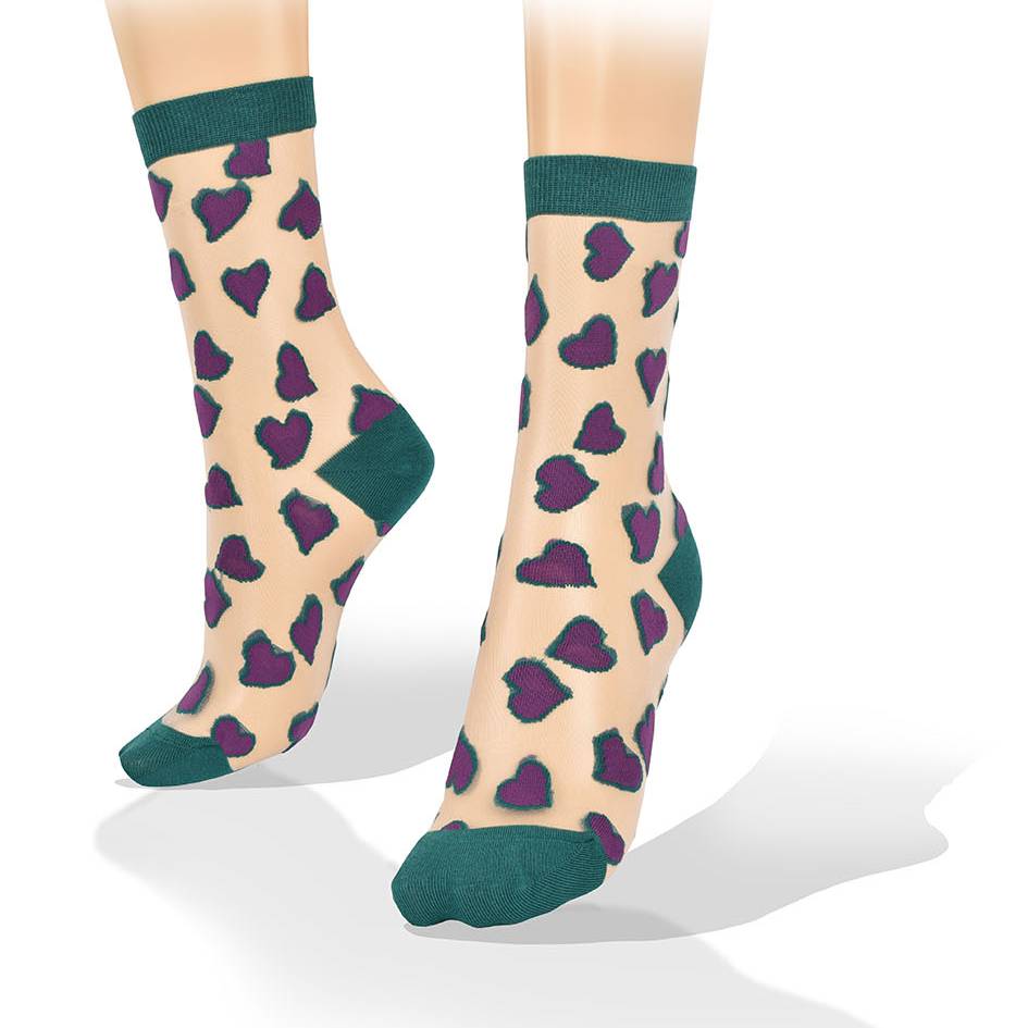 Medias Transparentes Corazones Violeta Borde Verde Aves del Plata™