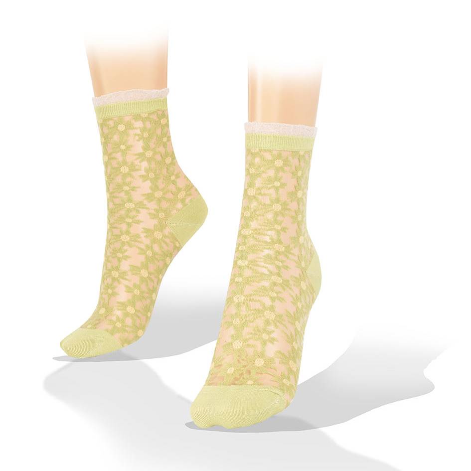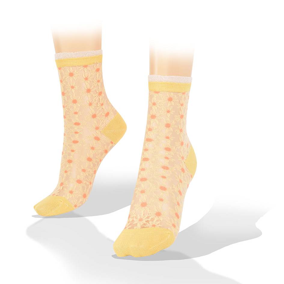 Medias Transparentes Flores Estrelladas Borde Amarillo Aves del Plata™