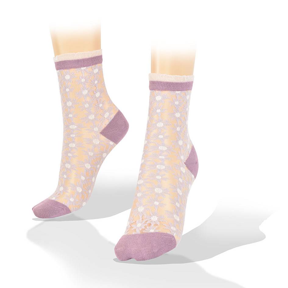 Medias Transparentes Flores Estrelladas Borde Violeta Aves del Plata™