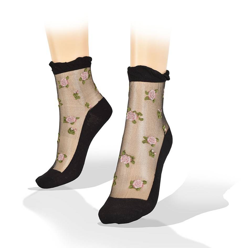 Medias Transparentes con Rosas y Fondo Negro Aves del Plata™