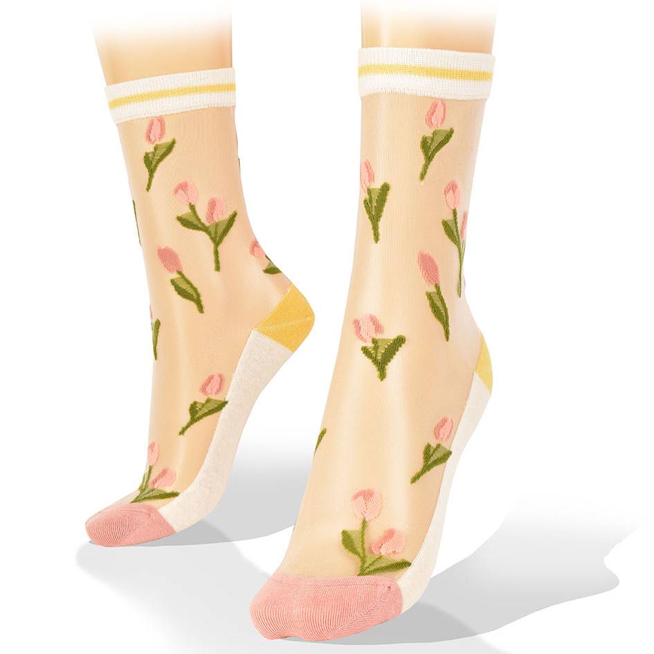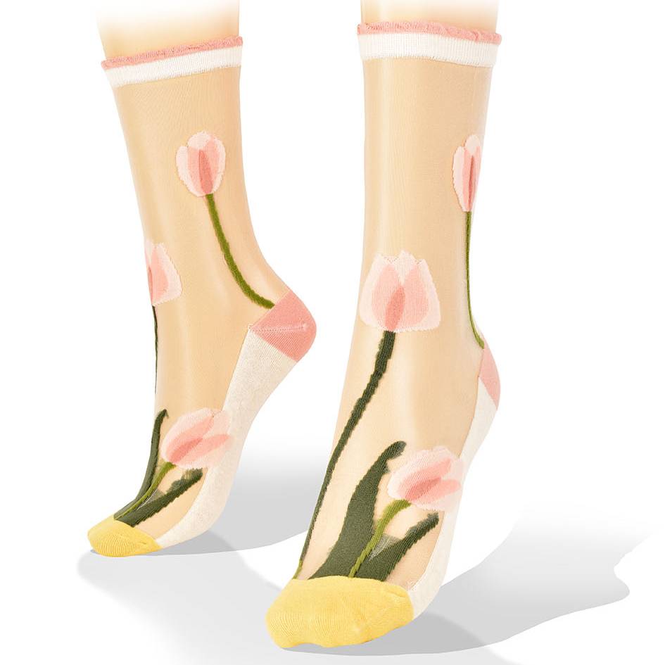 Medias Transparentes con Tulipanes