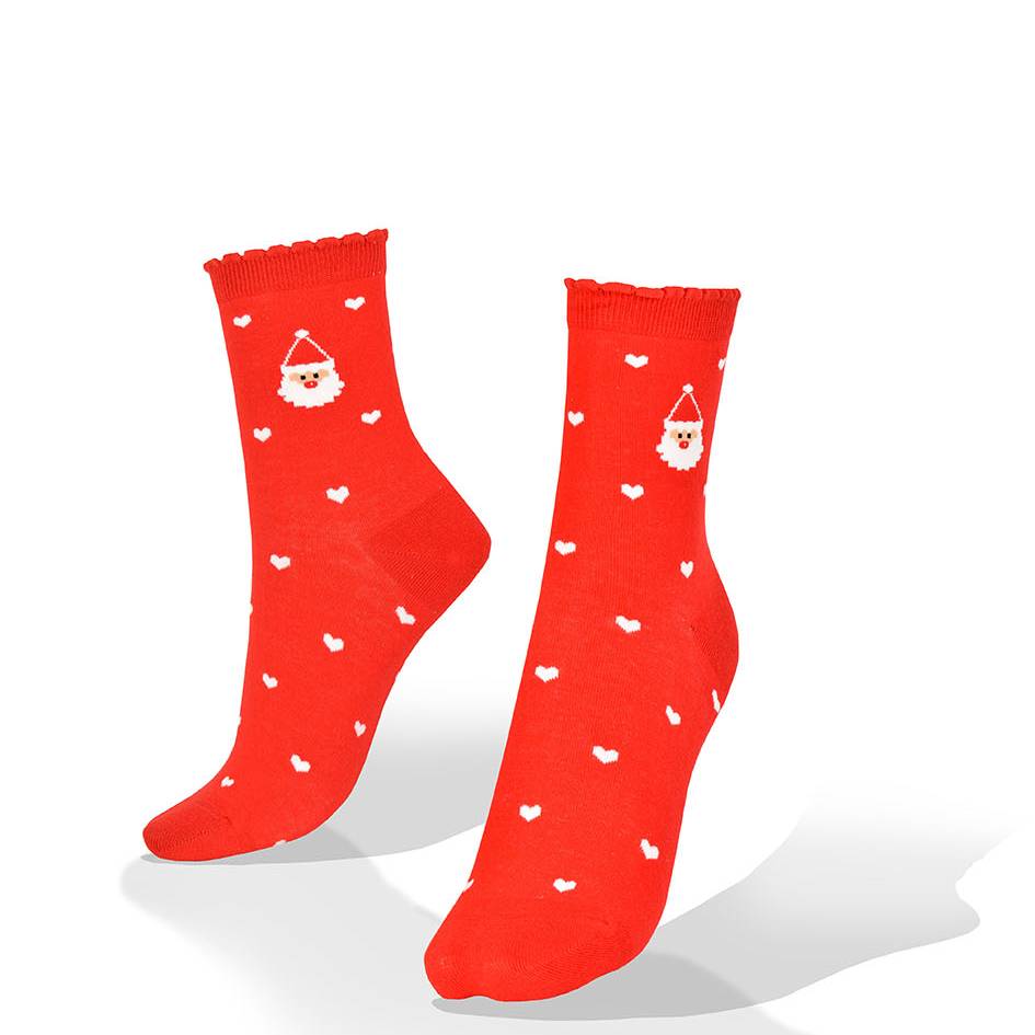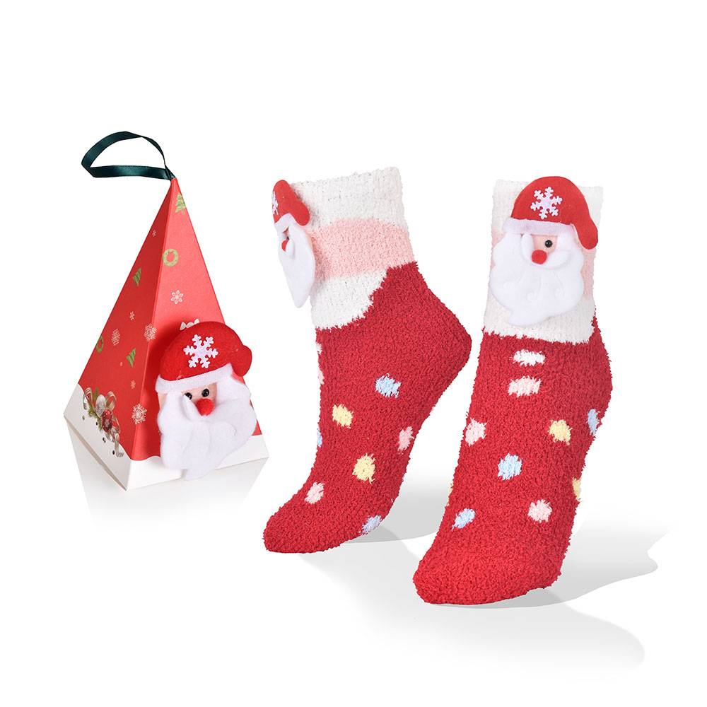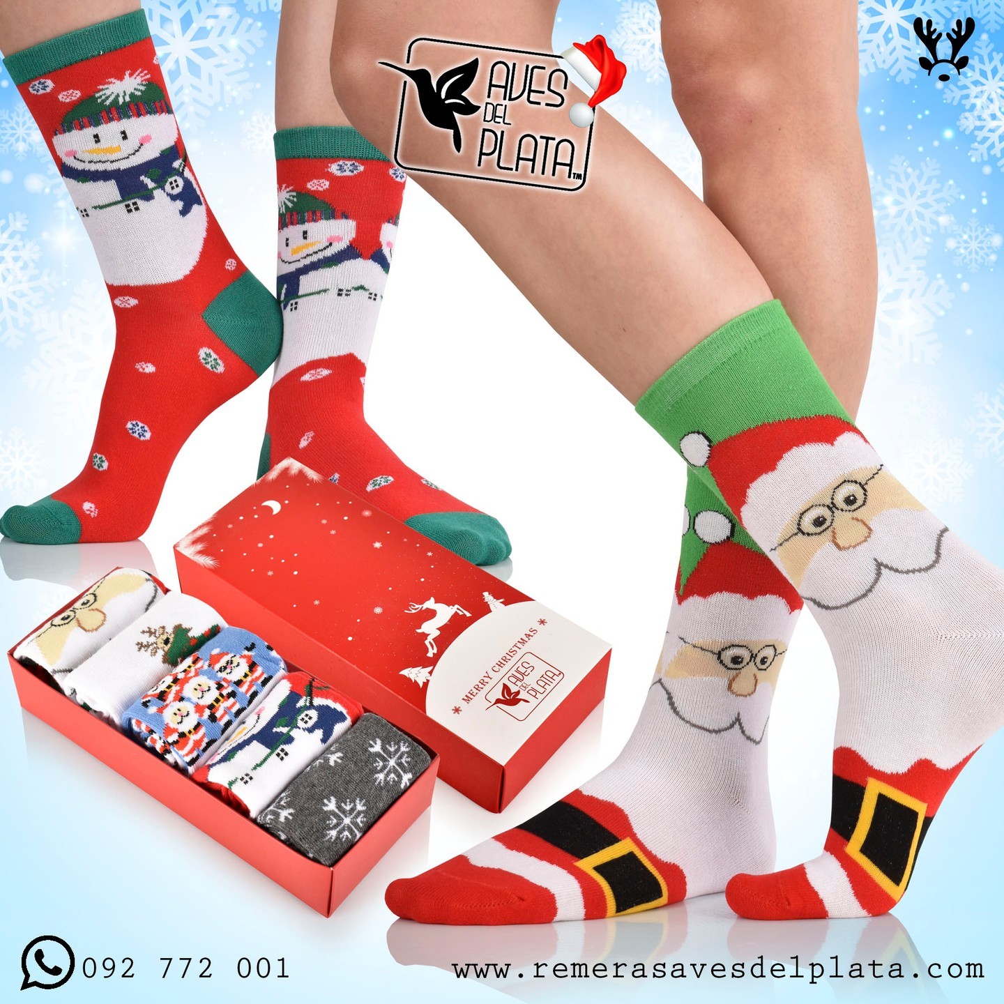Medias de Navidad Santa Claus en fondo azul caja triangular