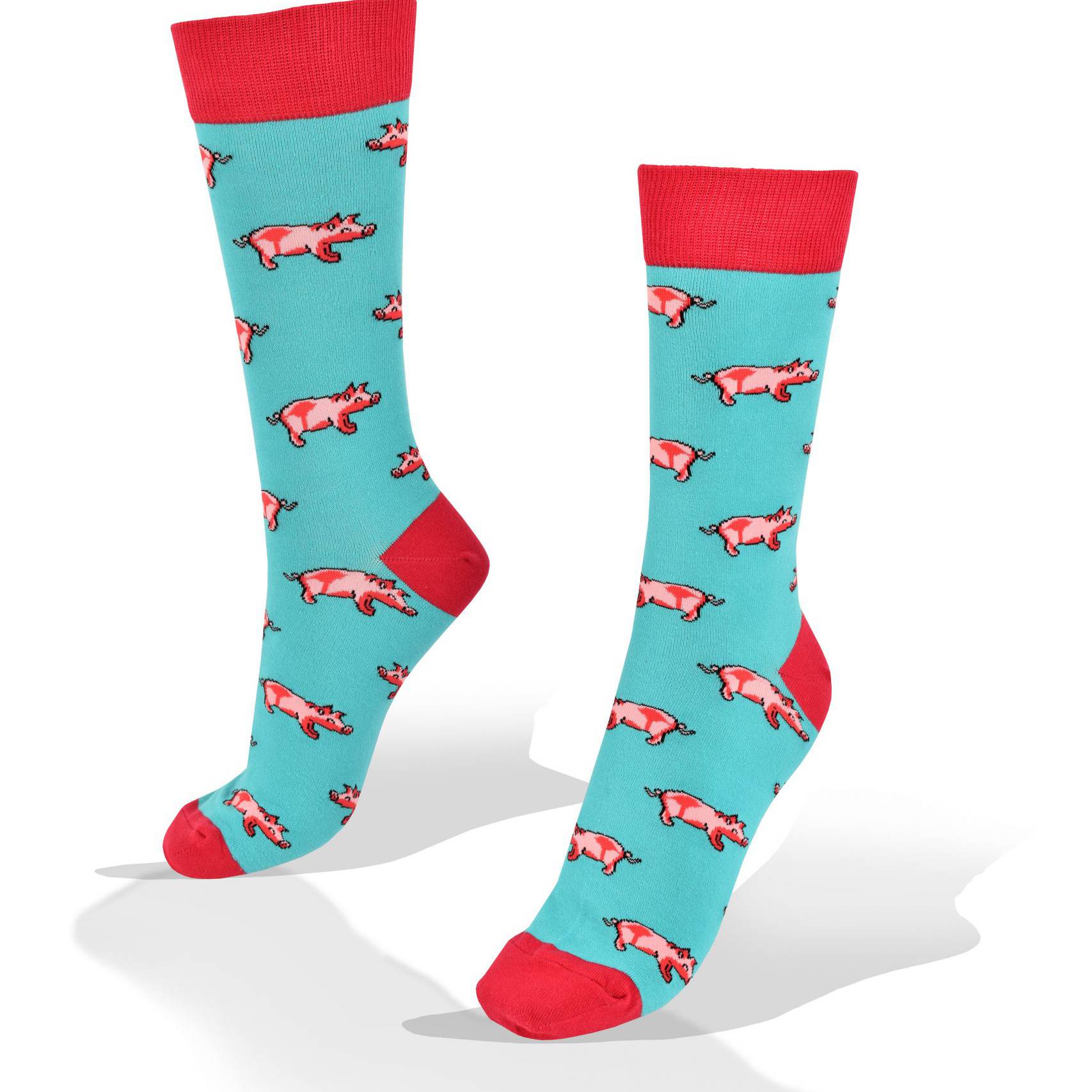 Medias Aves del Plata™ Cerdos en Fondo Celeste Turquesa, Talón y Tobillo Rosado.