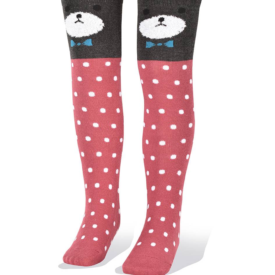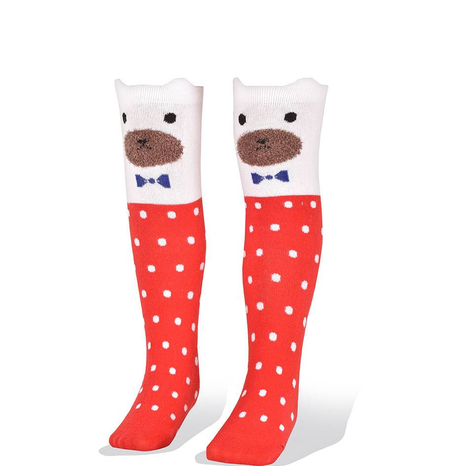 Medias Niña Largas Altas Oso Fondo Rojo con Pintitas Blancas