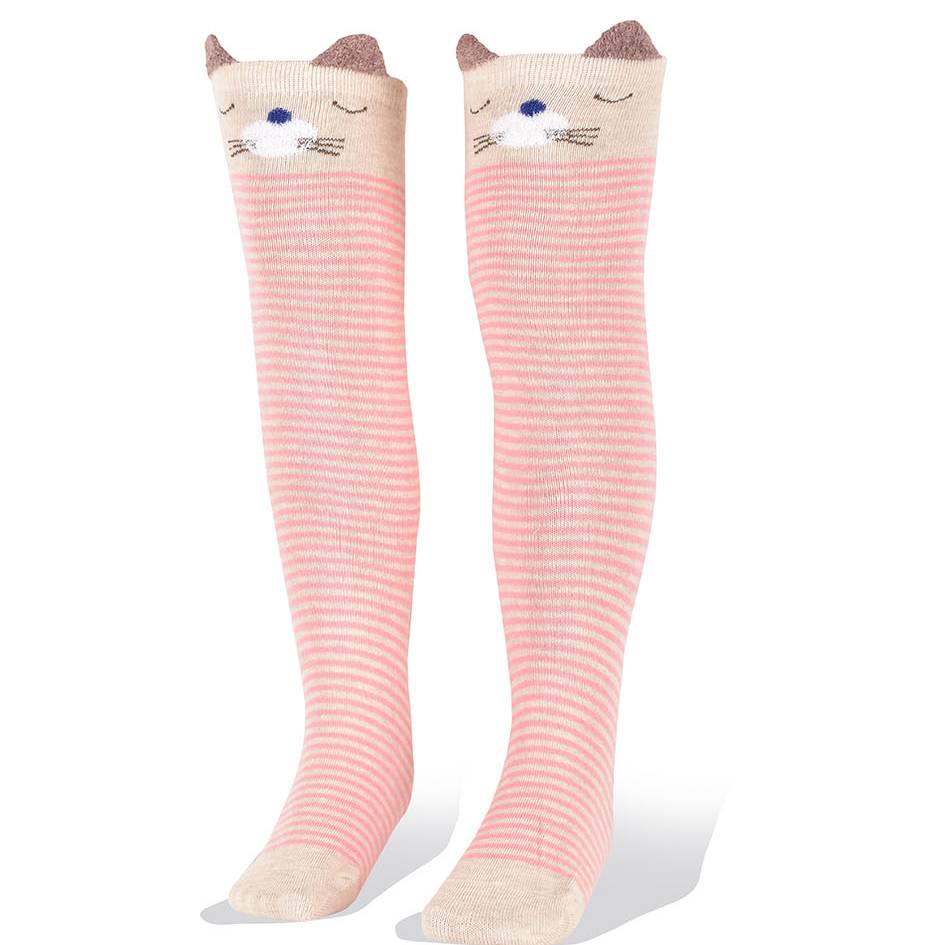Medias de Niñas Largas Altas Gato Fondo Rosa