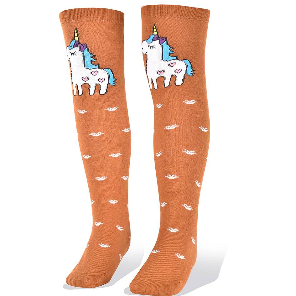 Medias Niñas Largas Altas Unicornio en Fondo Terracota