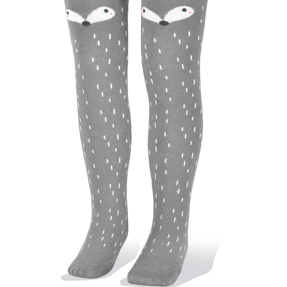Medias Niñas Largas Altas Zorro en Fondo Gris con Pintitas