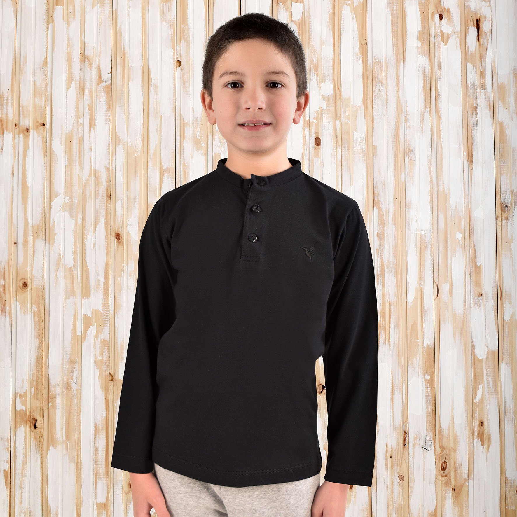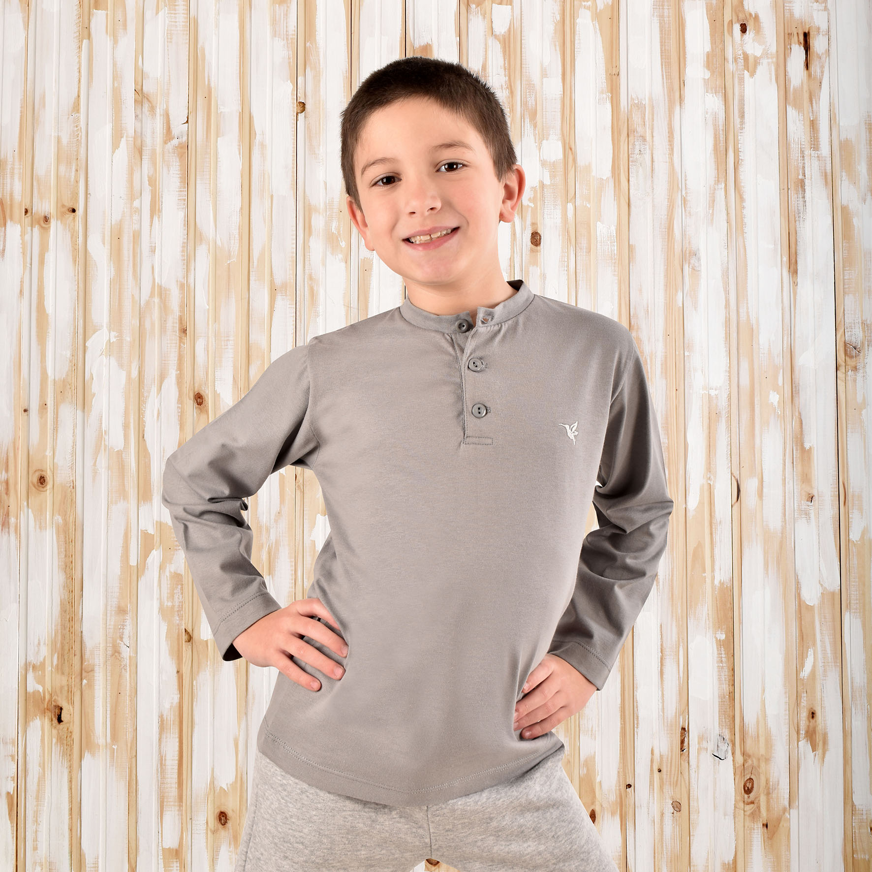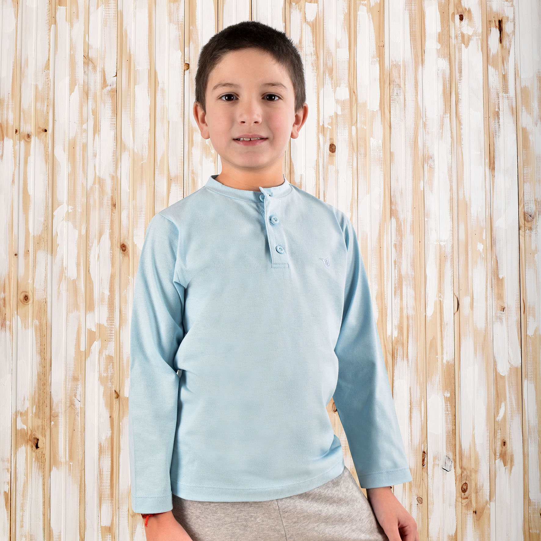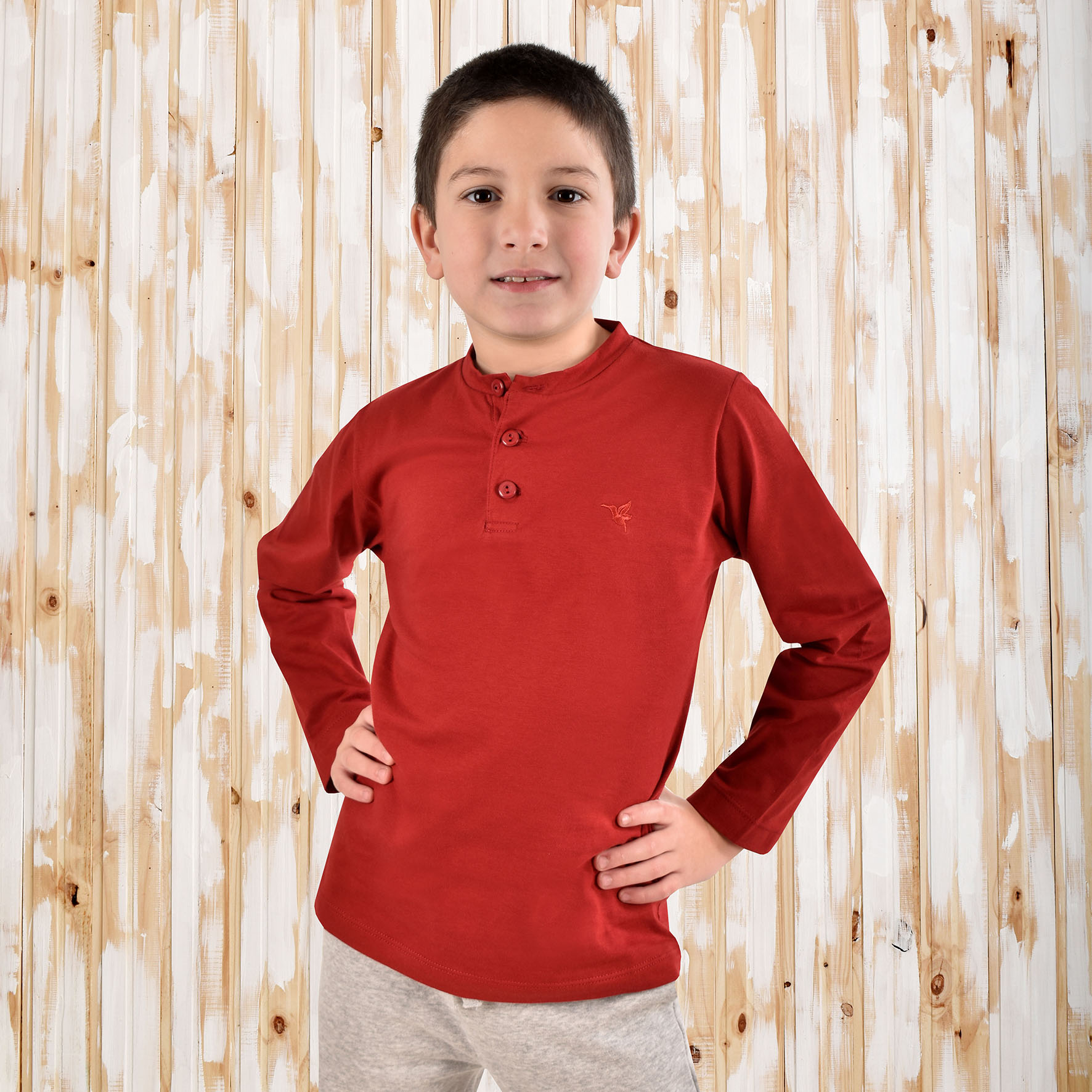 Remera Henley Manga Larga 100% Algodon Niño Color Cereza