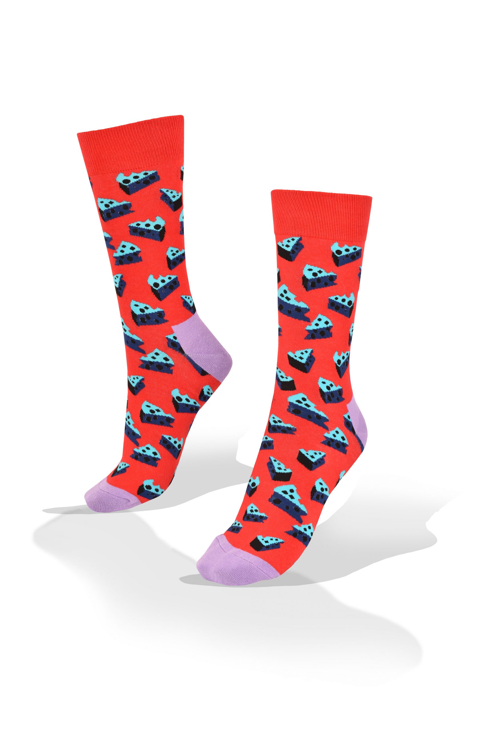 Medias Aves del Plata™ Quesos Azules en Fondo Rojo y Elástico Violeta