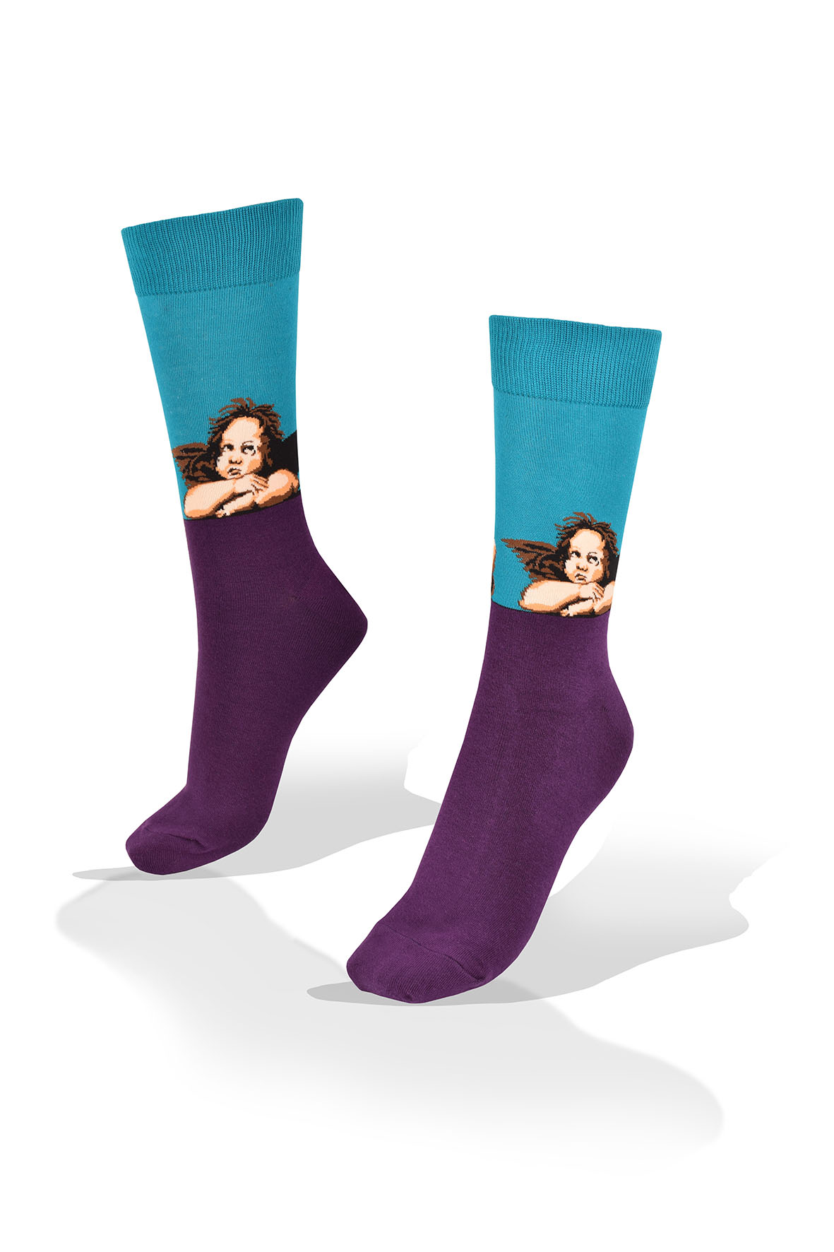 Medias Aves del Plata ™Angel Querubín de Botticelli ,Fondo Violeta y Turquesa