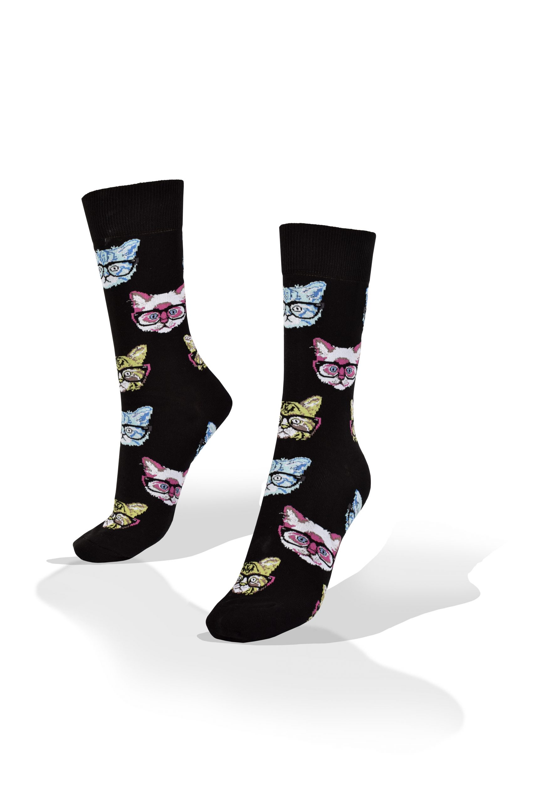 Soquetes Medias Aves del Plata™ Gatos con Lentes en Fondo Negro.