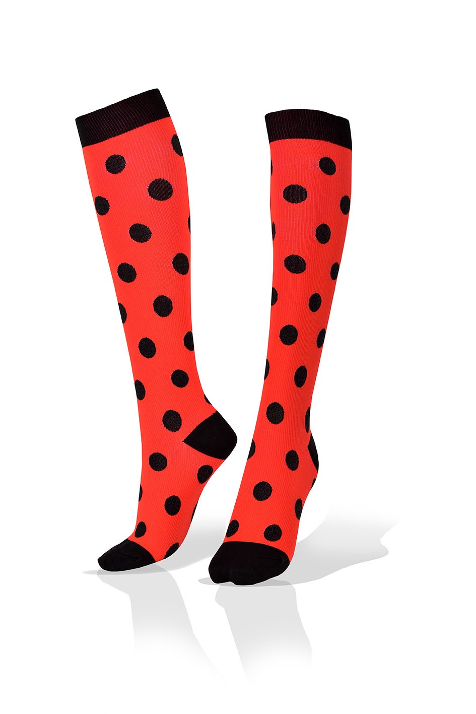 Medias de Compresion Rojas con Lunares Negros