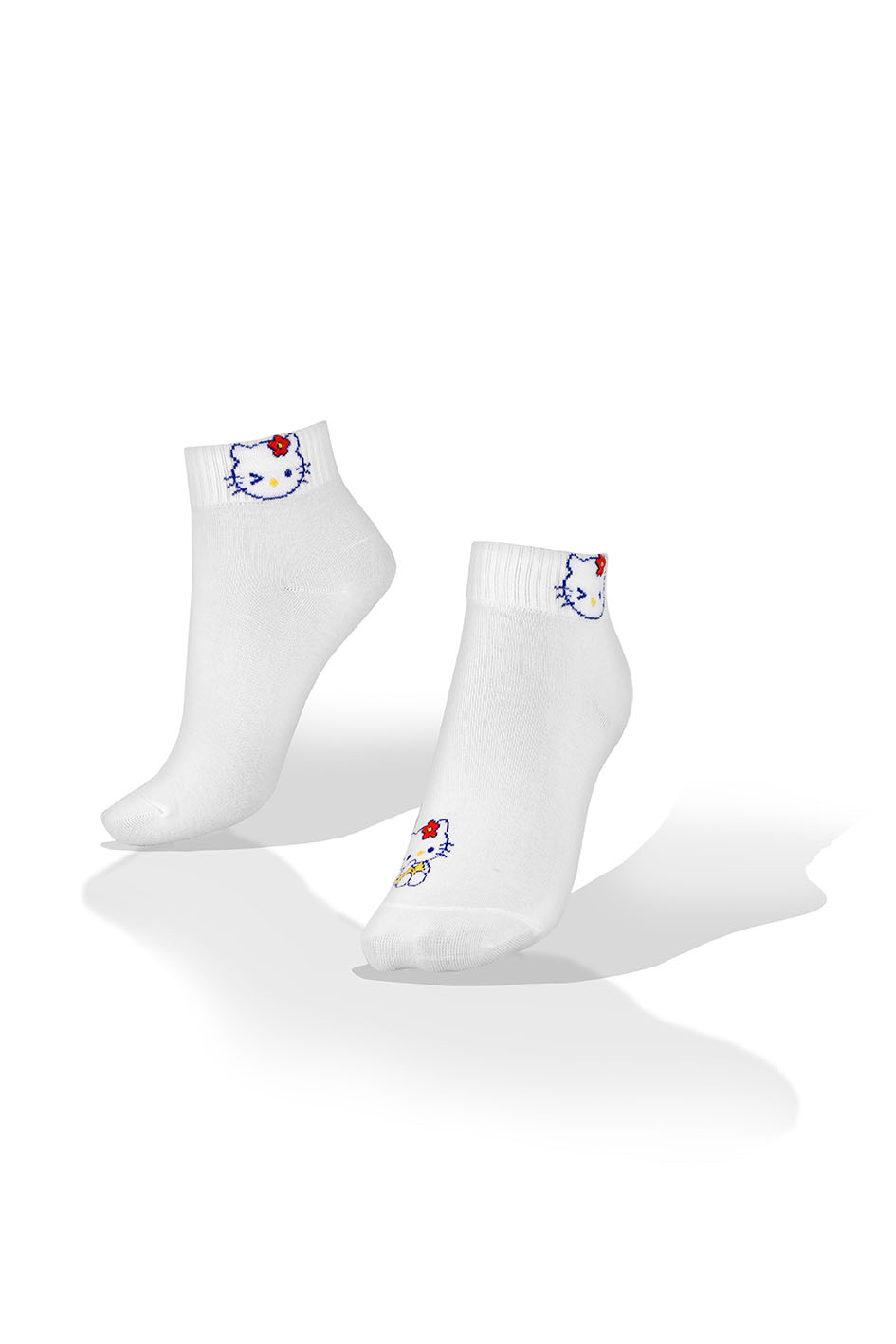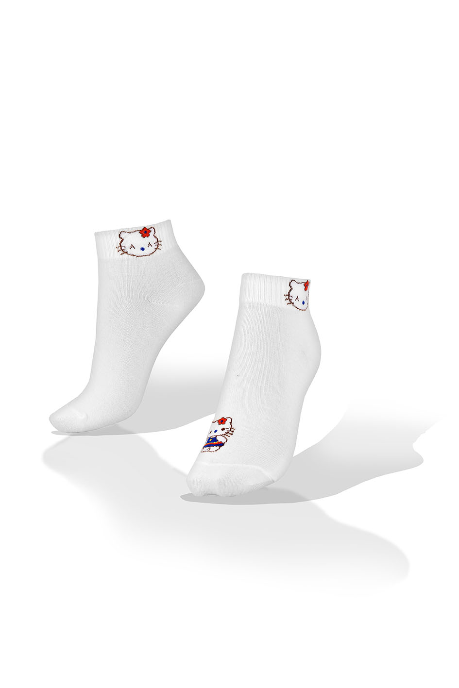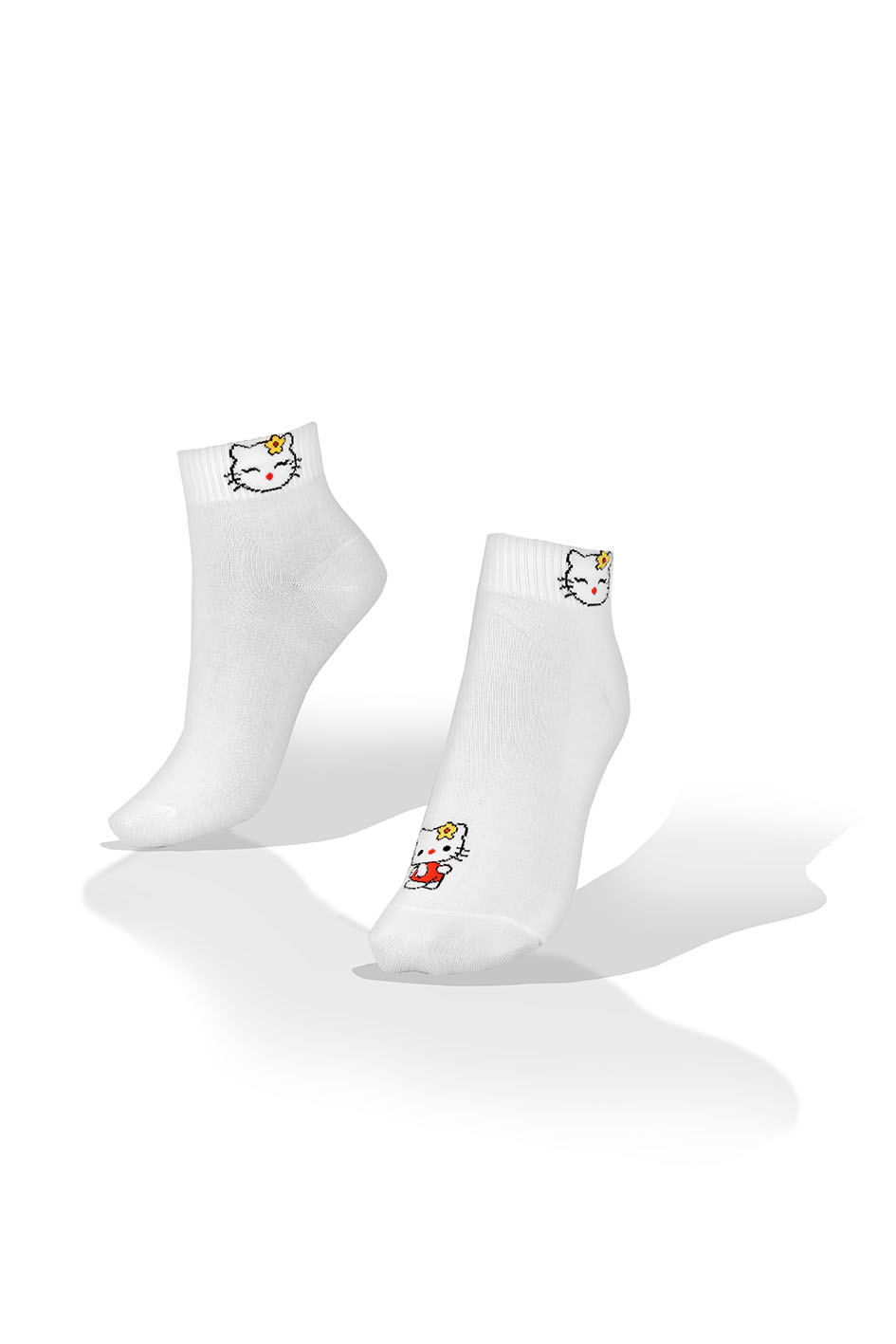 Medias Gatita con Flor Amarilla Fondo Blanco