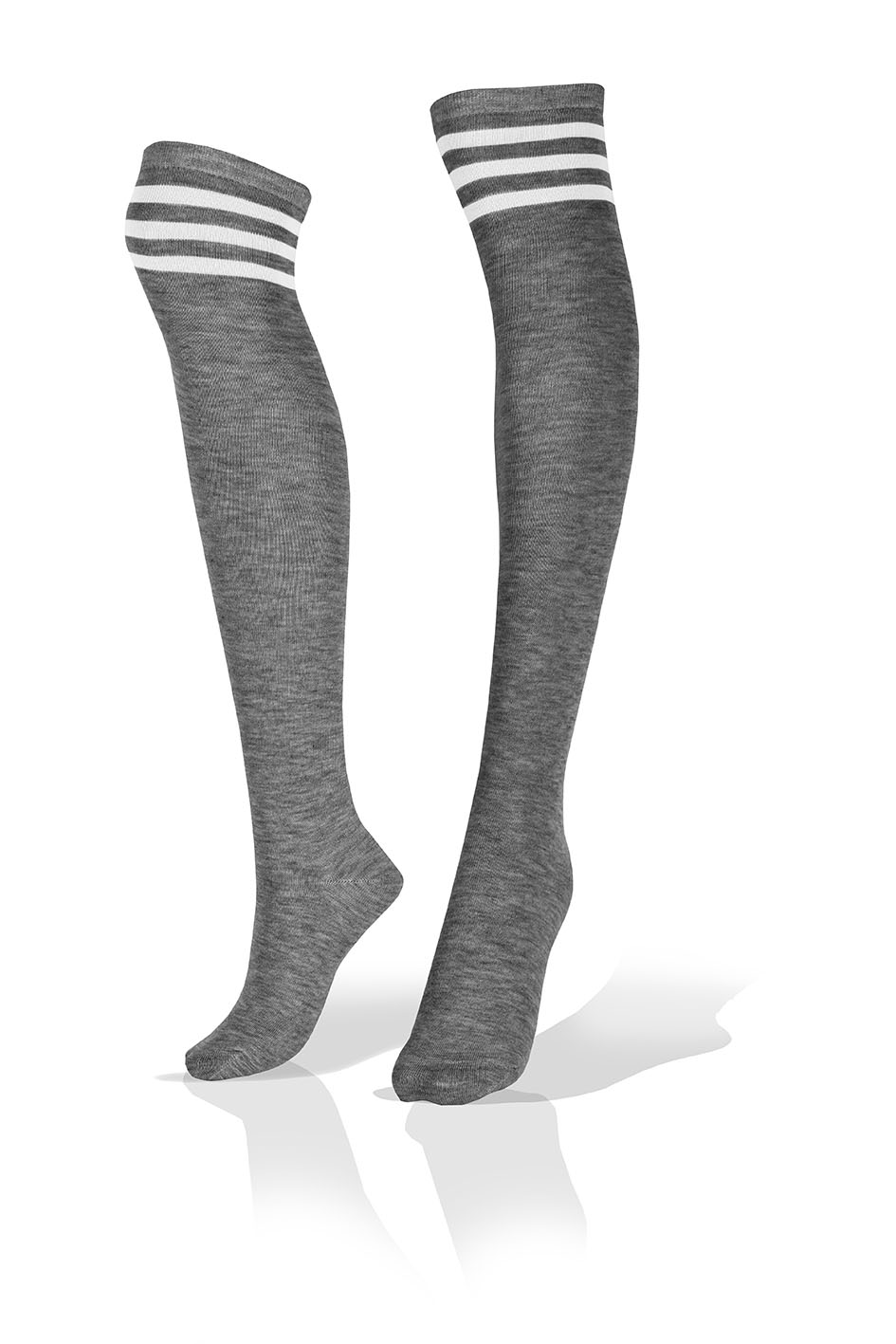 Medias Largas Altas en Gris con 2 Rayas Blancas