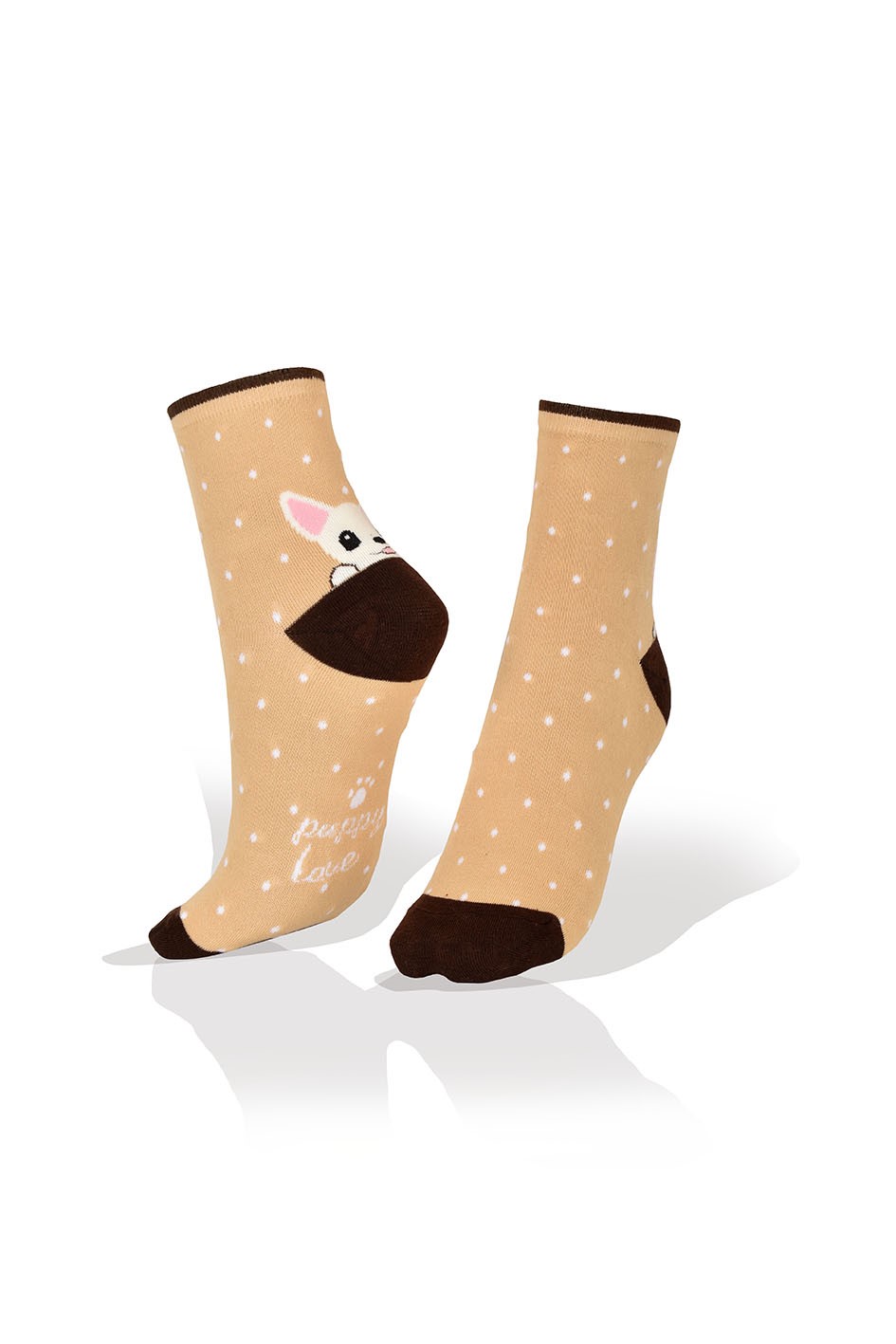 Medias Puppy Love, Amor de Cachorro, Perro Blanco Fondo Beige