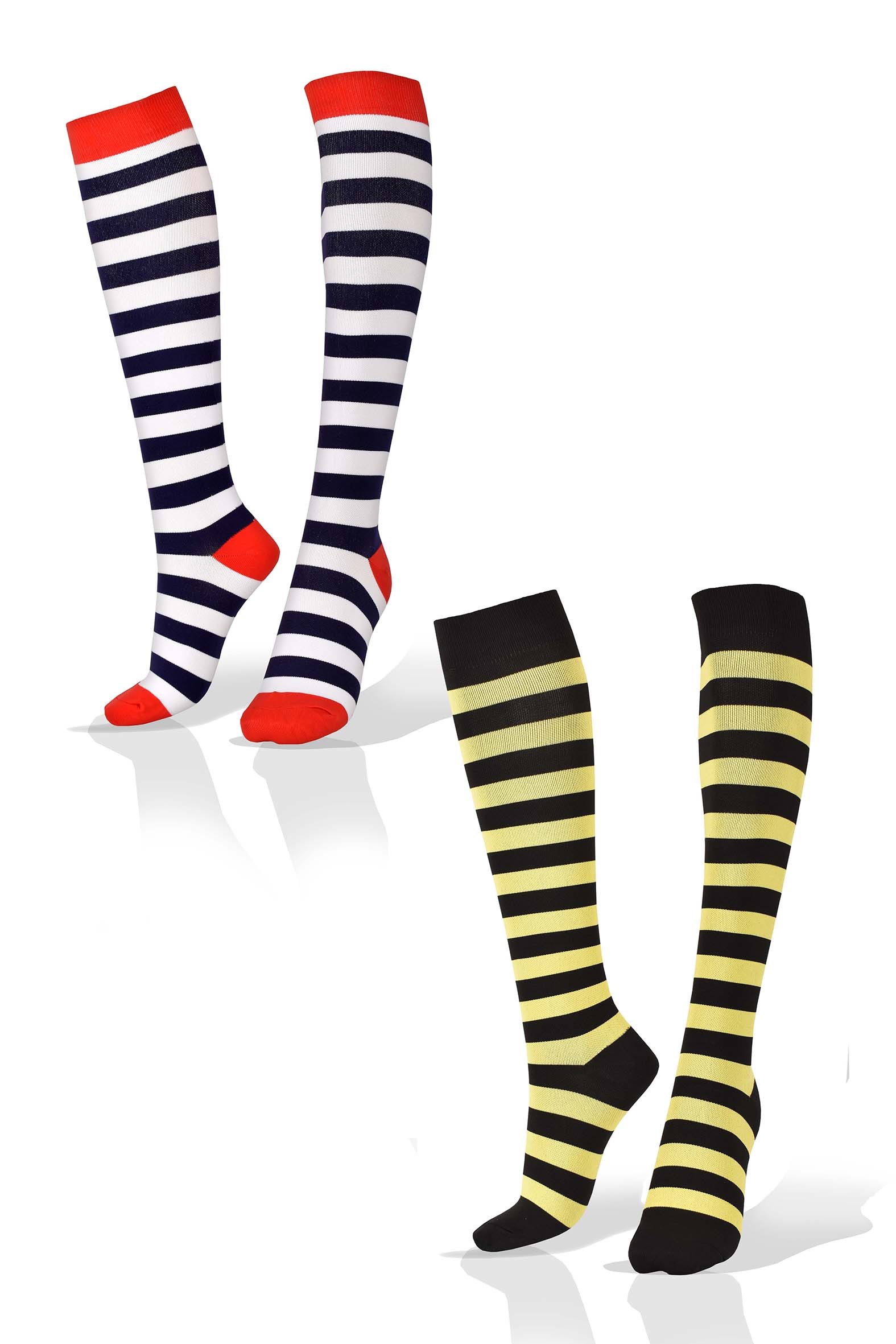 2 Pares de Medias de Compresion Rayas Amarillo y Negro y Rayas Rojo, Azul y Blanco Aves del Plata™