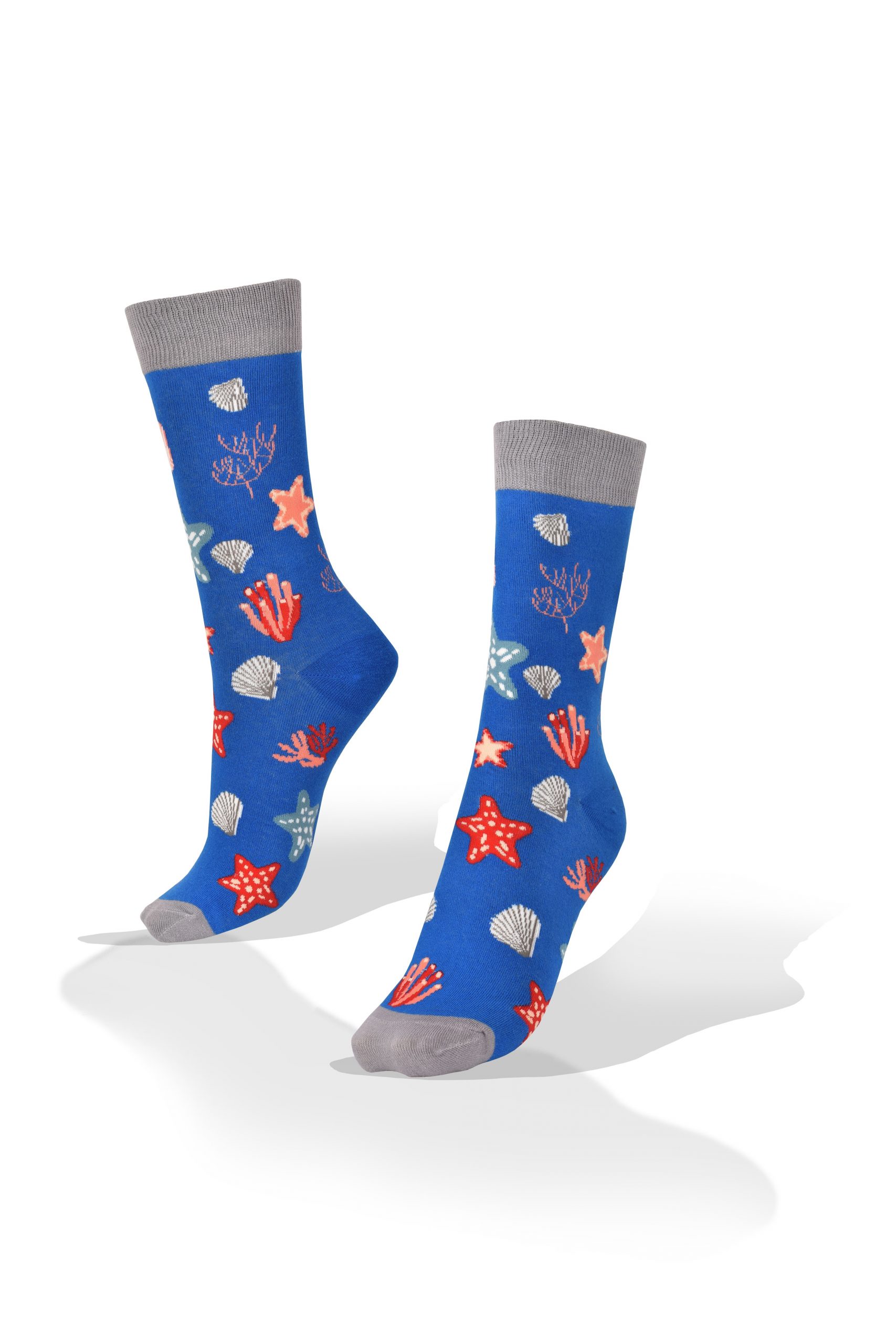 Medias Aves del Plata™ Estrella de Mar y Corales en Fondo Azul