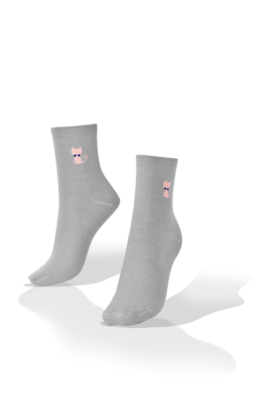 Medias con Gato con corazones y Moña Gris Aves del Plata™
