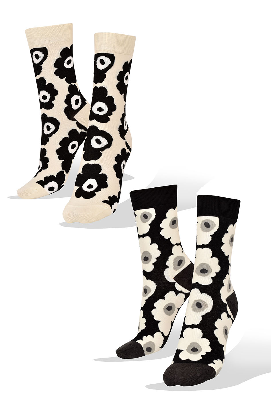 Medias Flores en Blanco y Negro 2 Pares Aves del Plata™