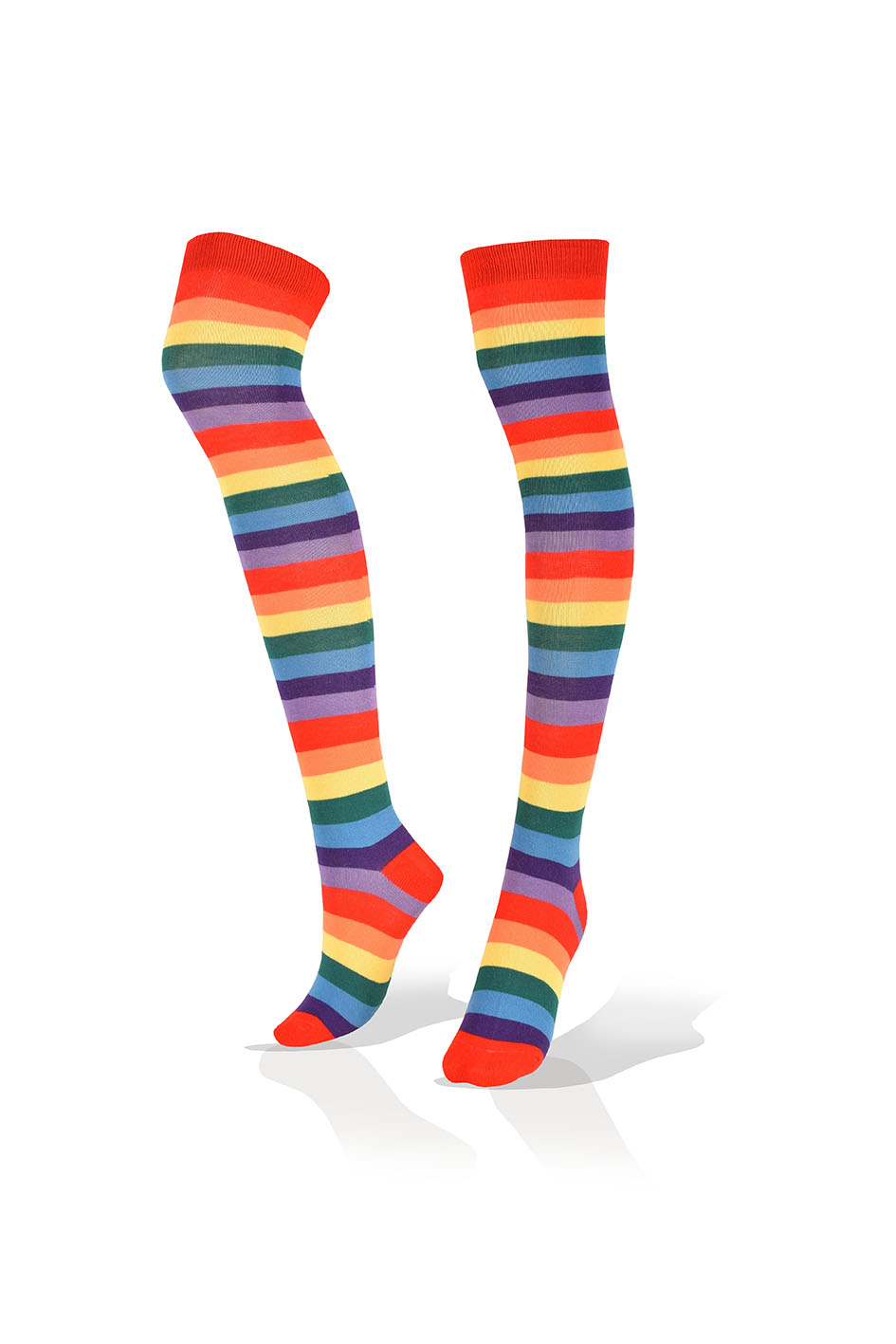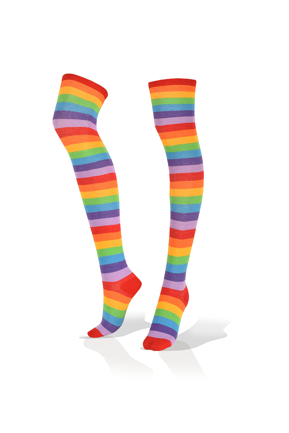 Medias Largas Altas Multicolor con Rayas Violeta Borde Rojo