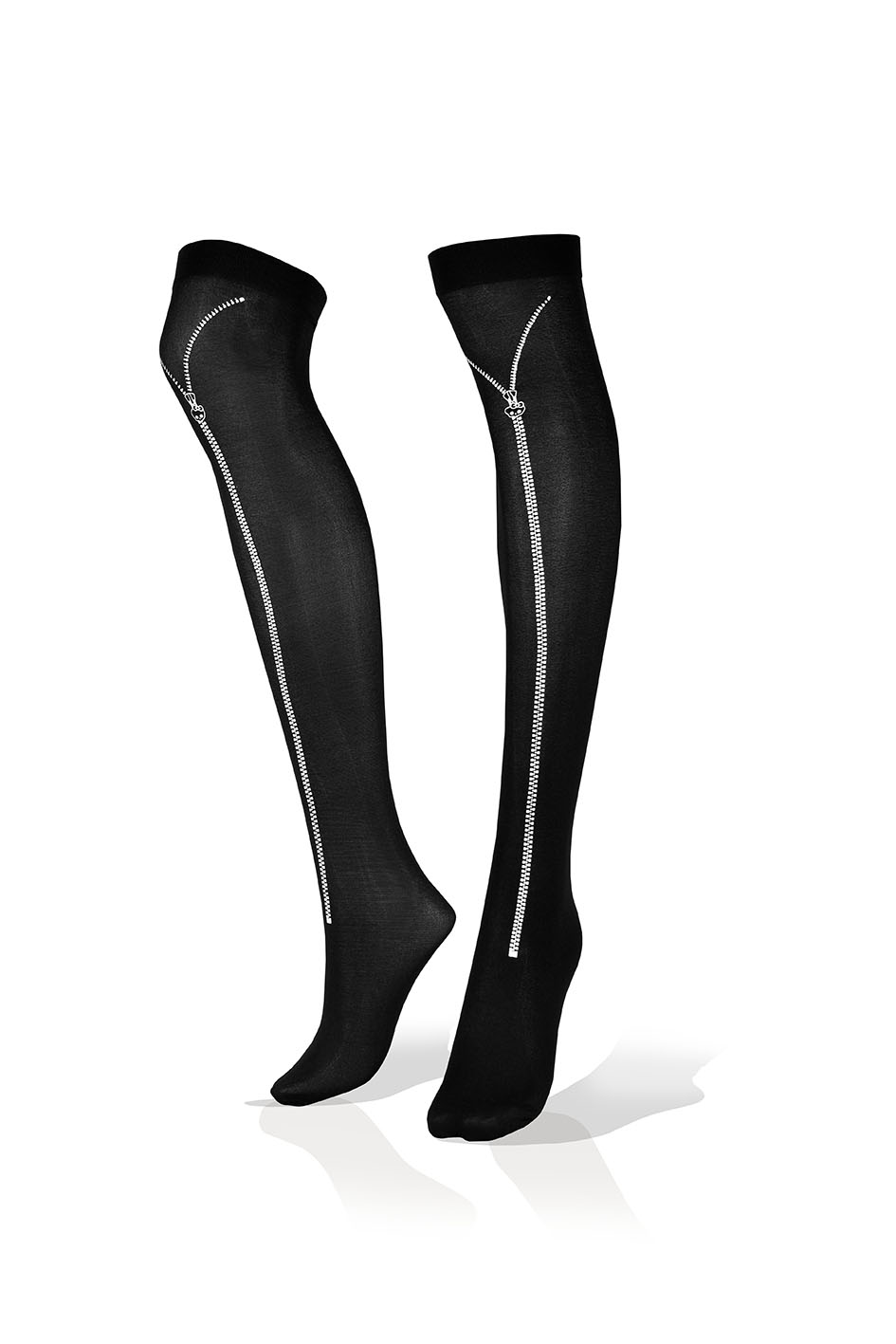 Medias Largas Altas en Negro con Diseño de Cierre en Blanco