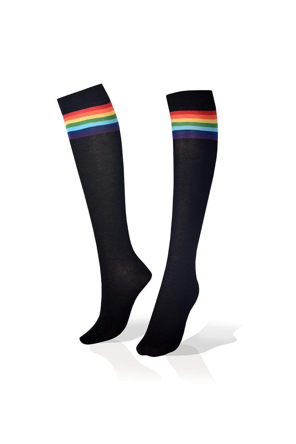 Medias Largas Rayas Anchas Muticolor Borde Negro