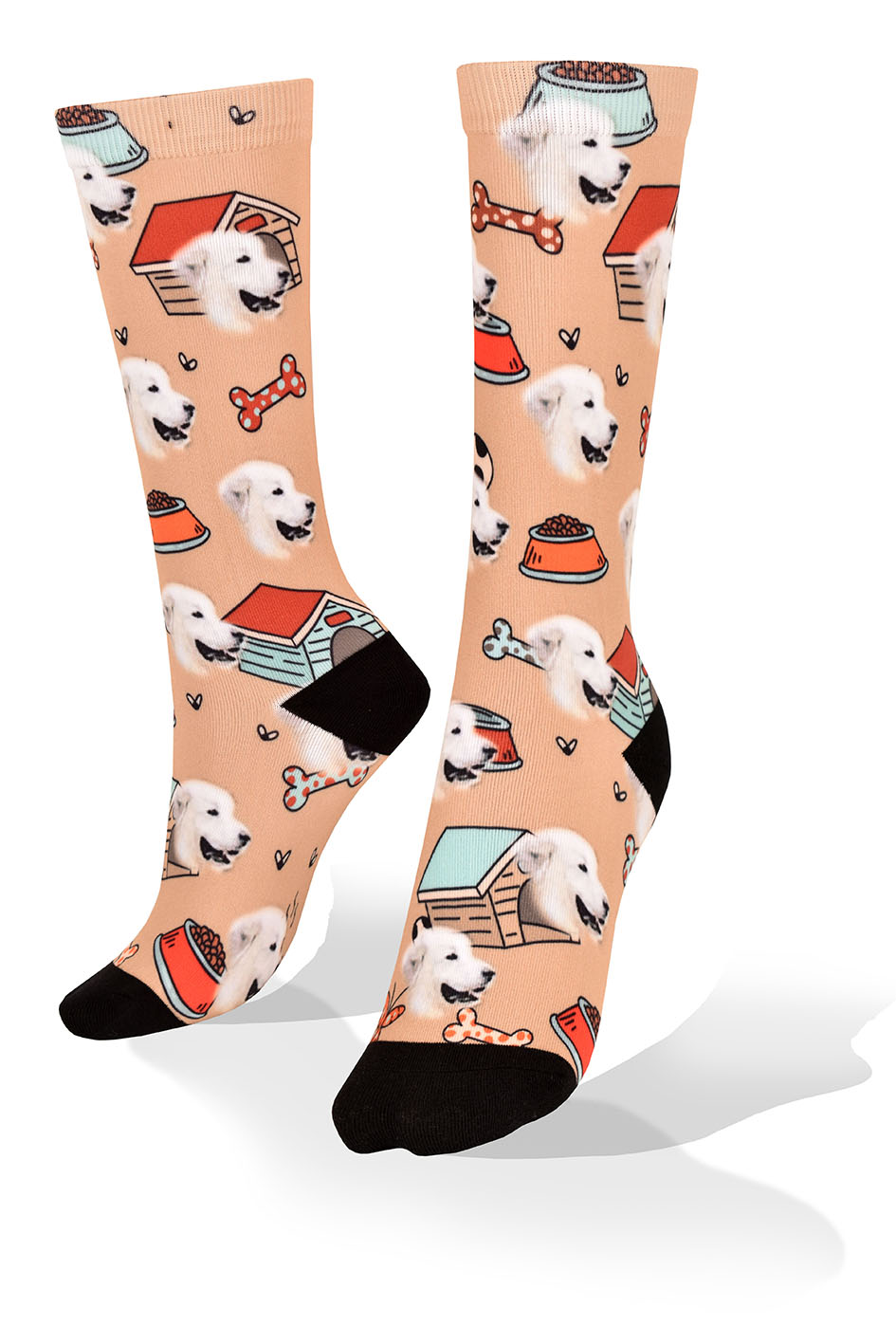 Medias Perro que nos mira en Fondo beige Aves del Plata™